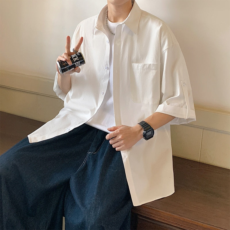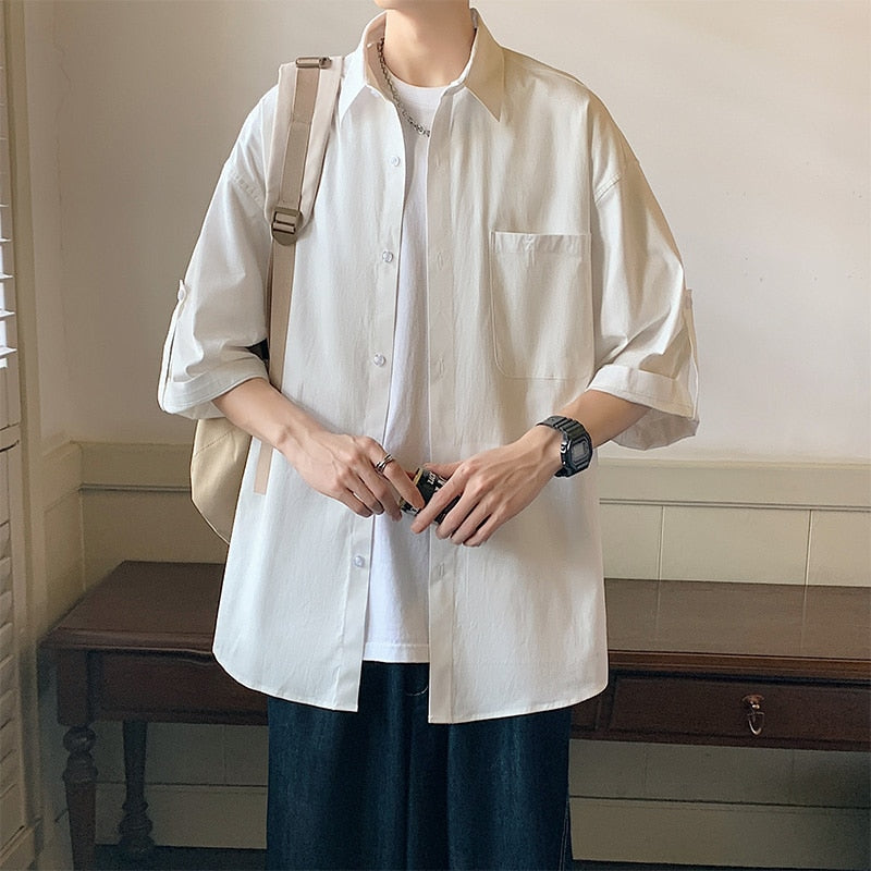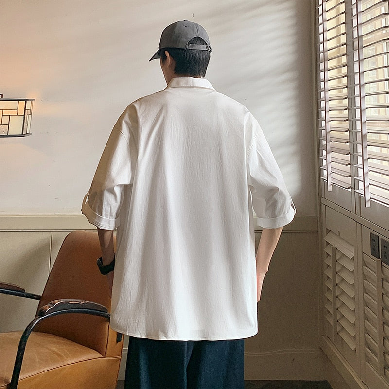 Spring/Summer Men's Shirt Japanese Solid Color Shirt Short Sleeve Men's Summer Half Sleeve Top Coat Trendy Hong Kong Style Shirt