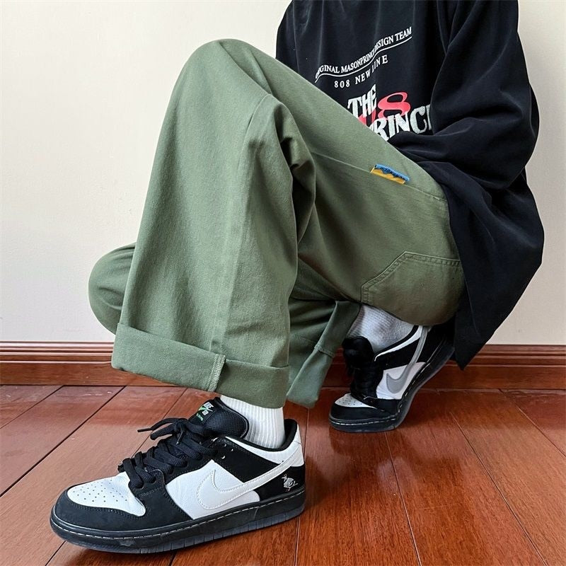 Straight Leg Men's Cargo Pants Straight Leg Fashion Elastic Waist Casual Trousers Harajuku Male New Brand Pants