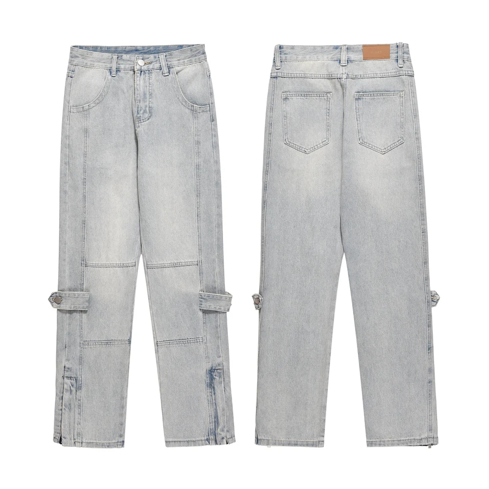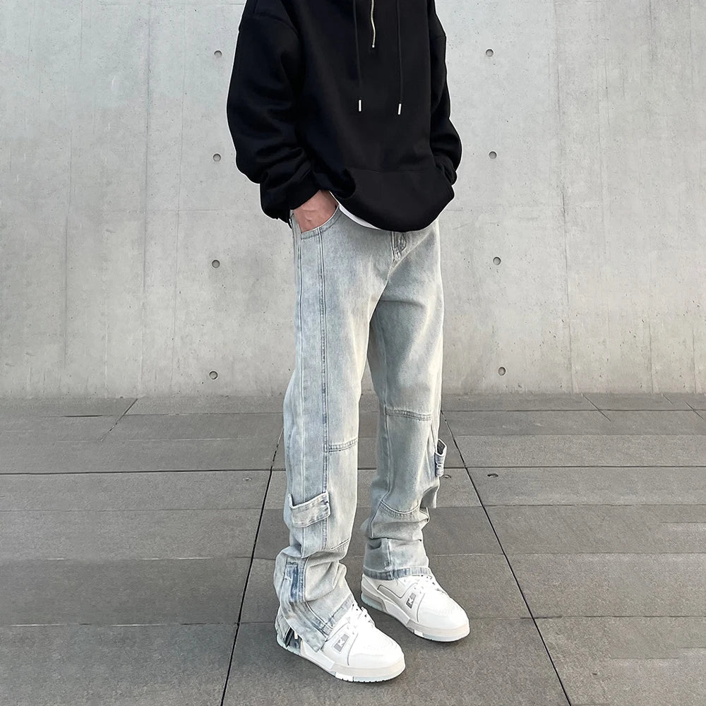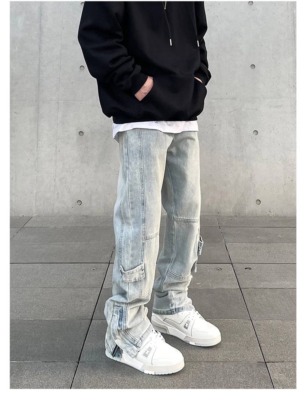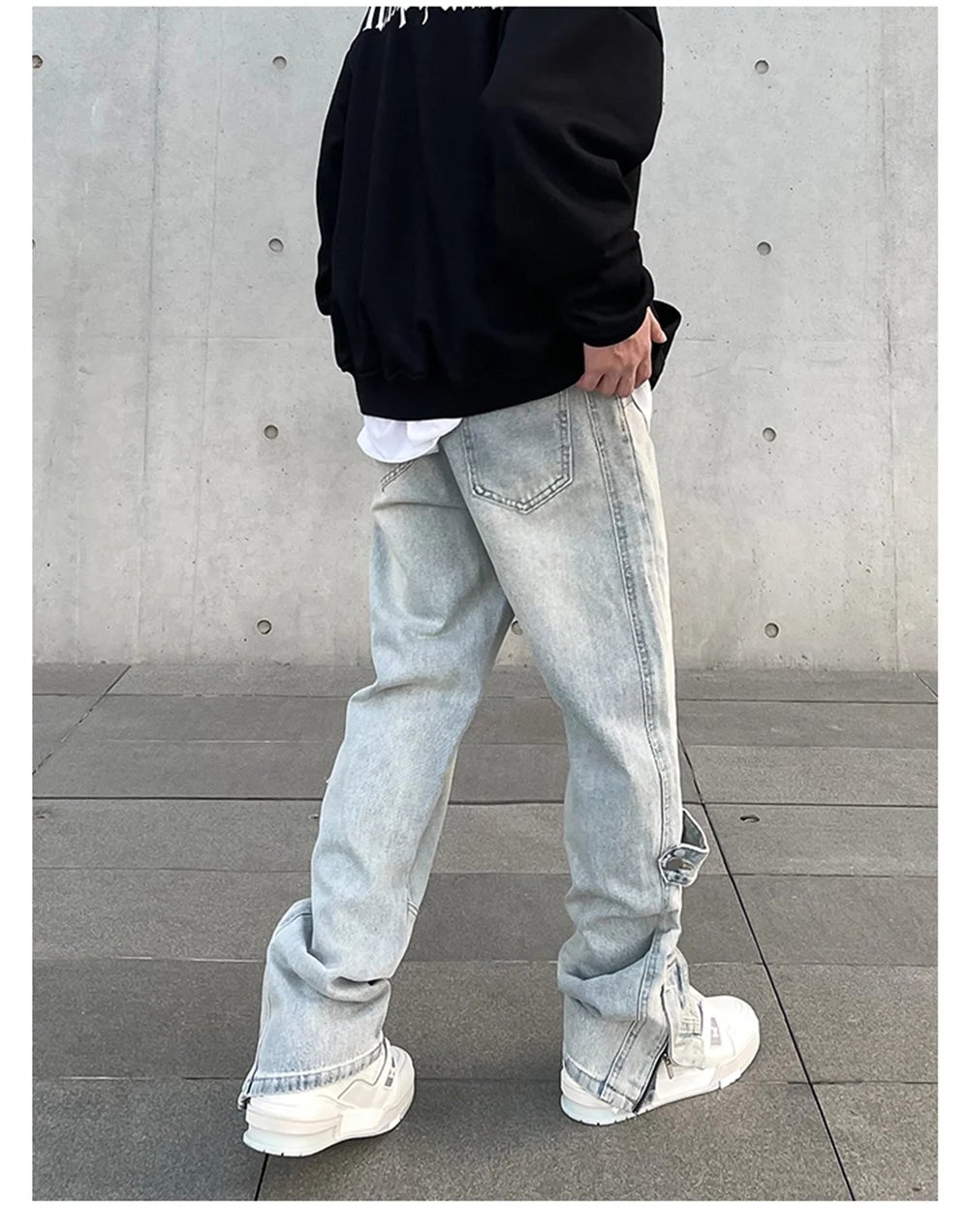 Streetwear Jeans Men Y2k Autumn Fashion Casual Zip Flared Trousers Slim Blue Vintage Winter Stacked Street Original Denim Pants