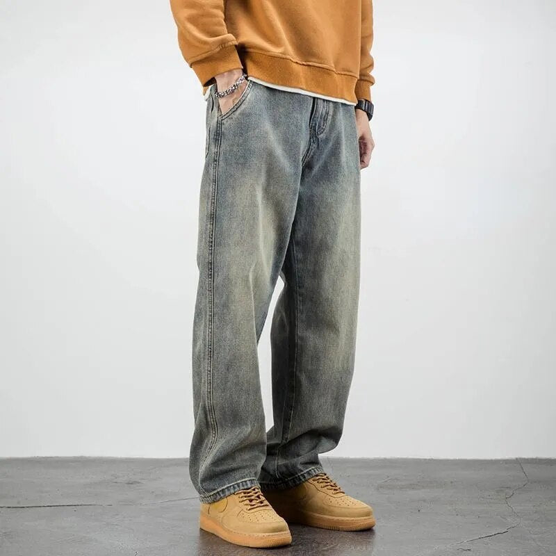 Stretch Men's Jeans Washed Motorcycle Trousers Vintage Man Cowboy Pants Punk Loose Straight Retro Baggy Designer Casual Goth Xs