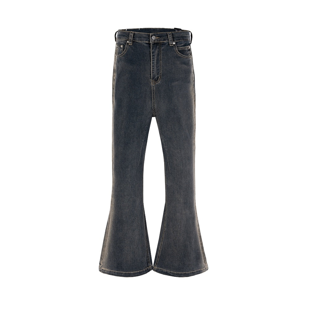 Style Gradient Washed Sashes Flare Jeans Unisex Streetwear Baggy Y2K Bell-bottoms Harajuku Loose Casual Denim Trousers