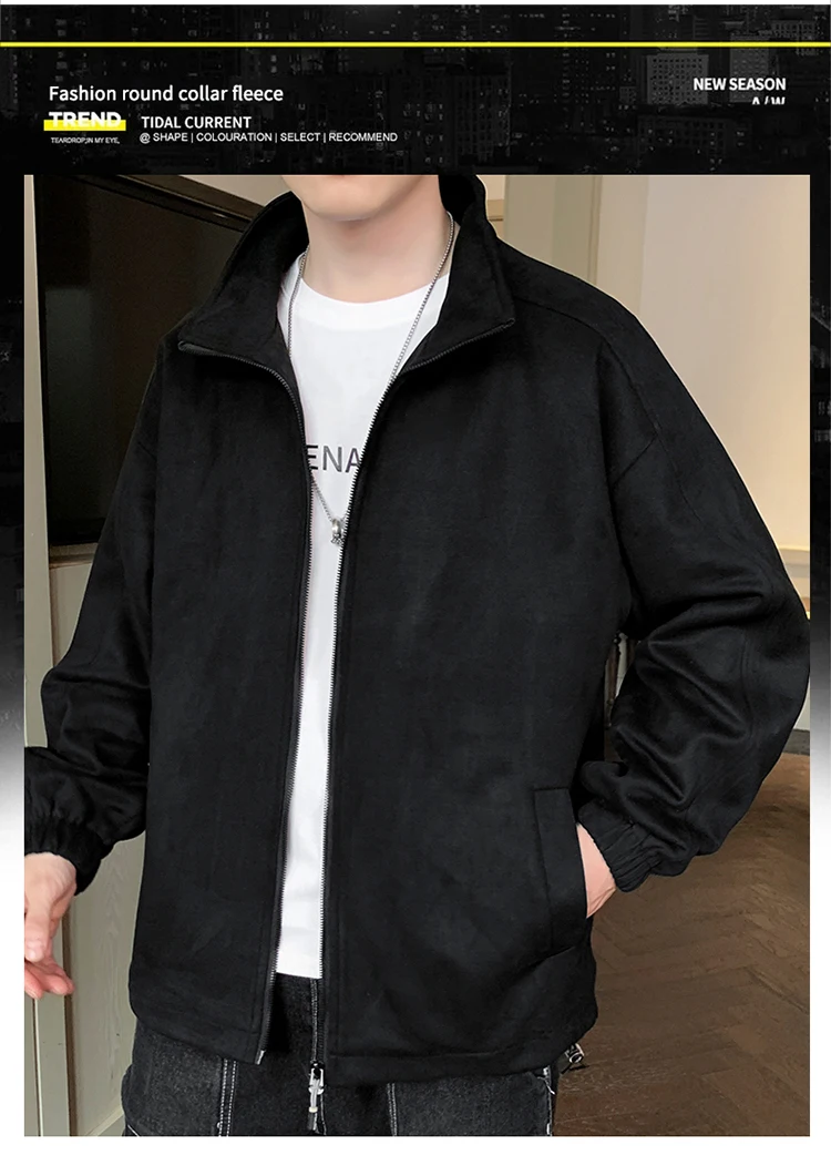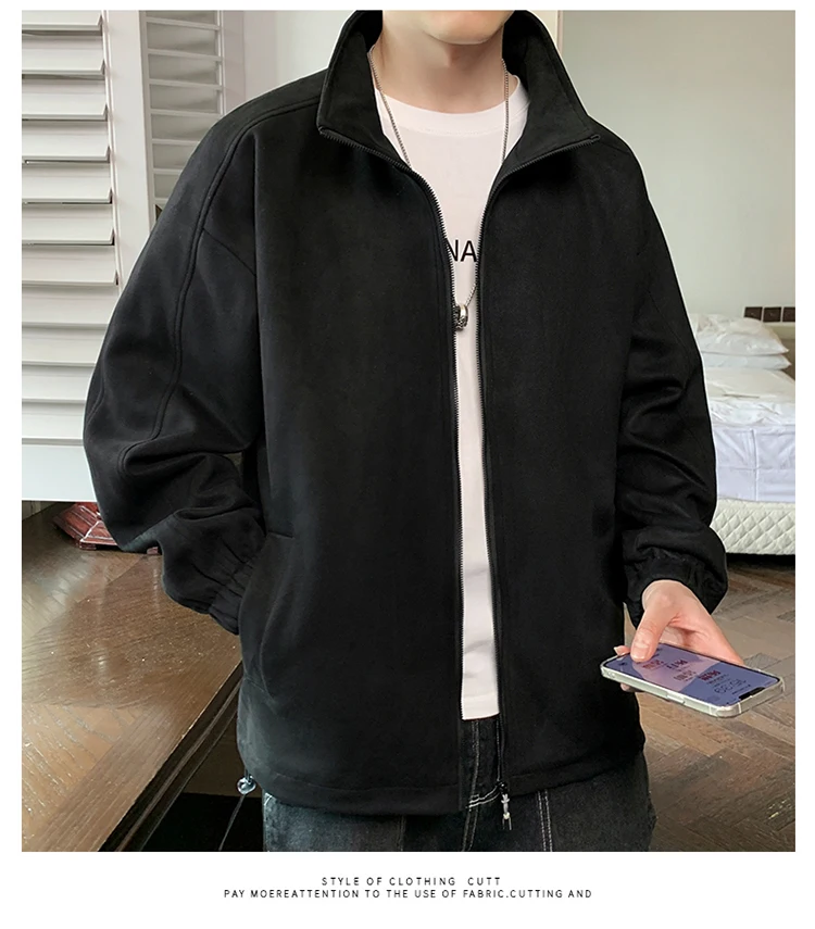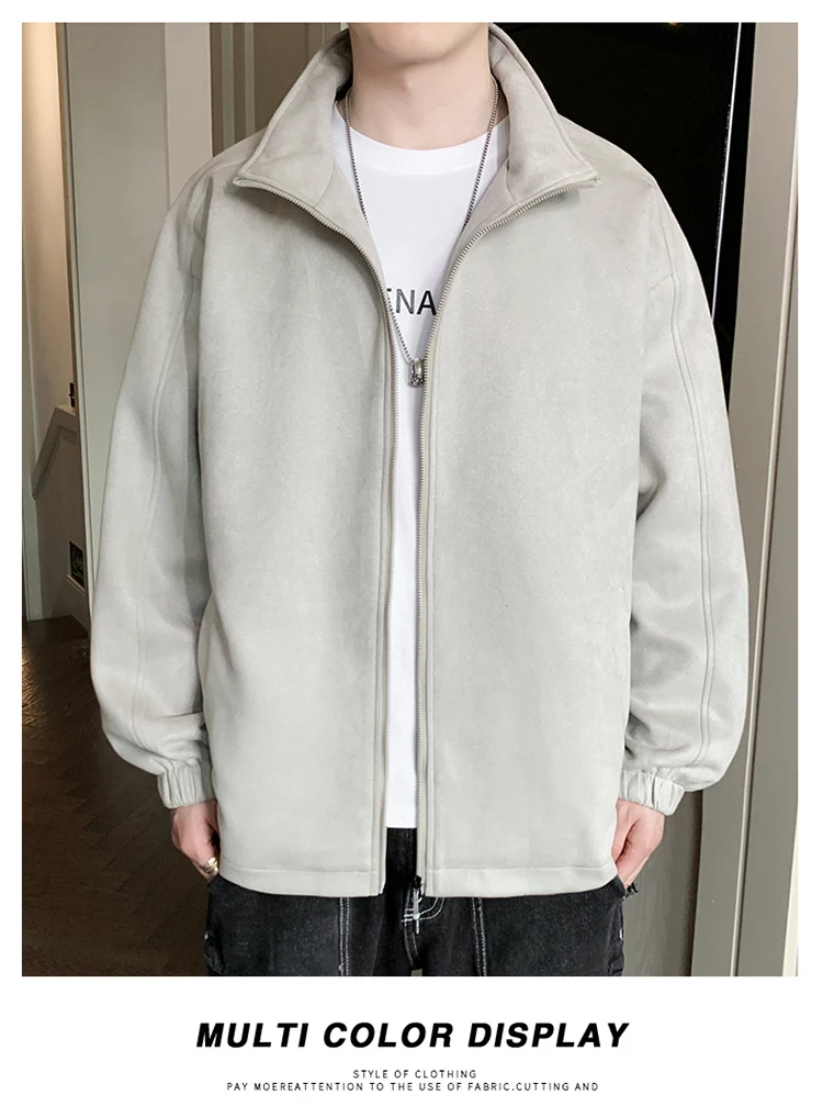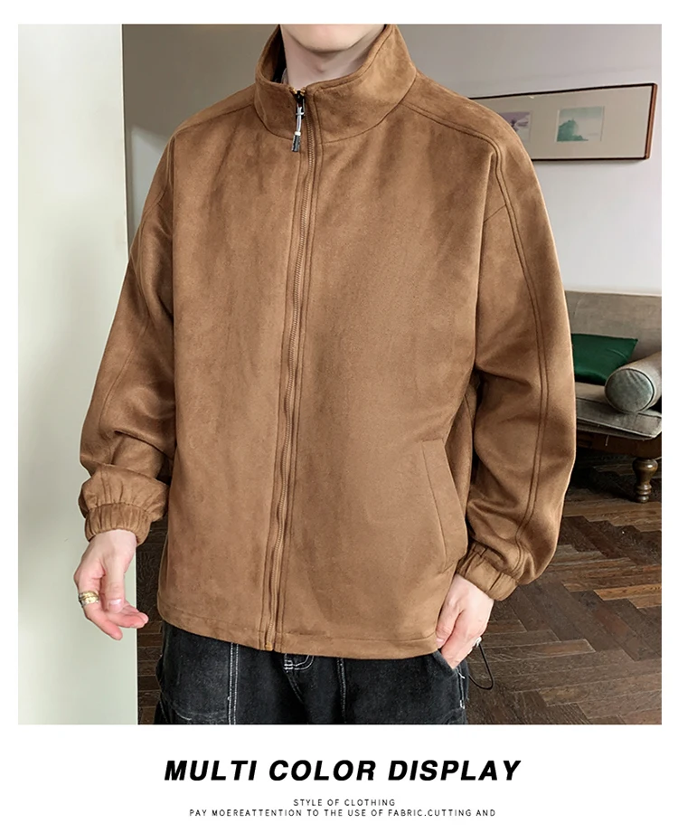 Suede Jacket Men Casual Spring and Autumn Outwear Jacket Zip Up Coats Men Clothing