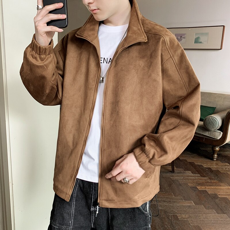 Suede Jacket Men Casual Spring and Autumn Outwear Jacket Zip Up Coats Men Clothing 2023