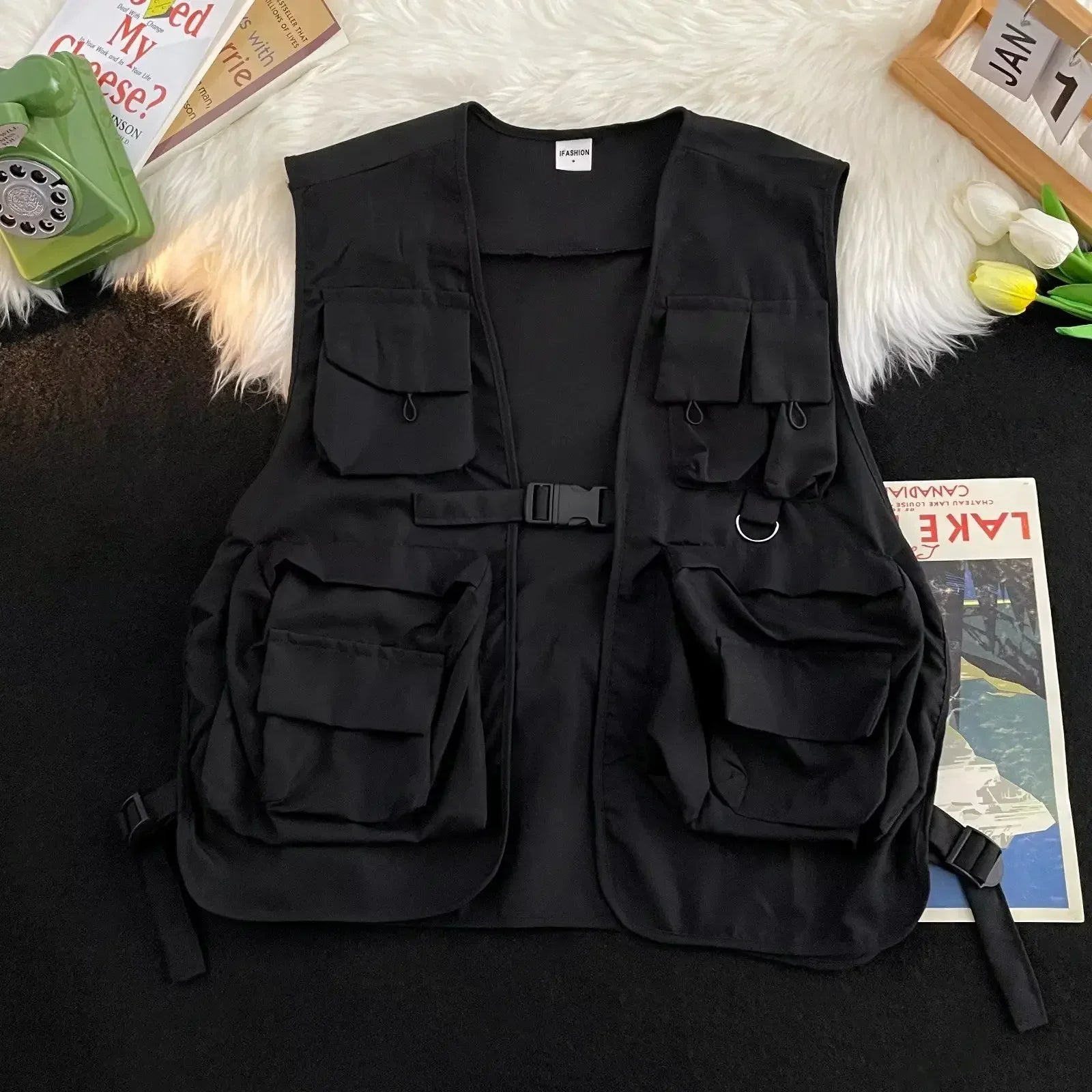Summer Cargo Vest Men's Breathable Outdoor Leisure Waistcoat High-Quality Loose Fashion Multi-pocket Solid Thin Hot Vests