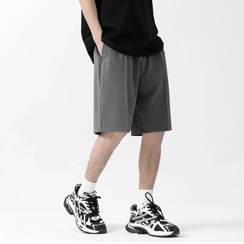 Summer Men's Shorts Straight Fit Knee-Length Short Suit Pant Solid Black Gray Clothing Student Thin Silky Casual Shorts Man