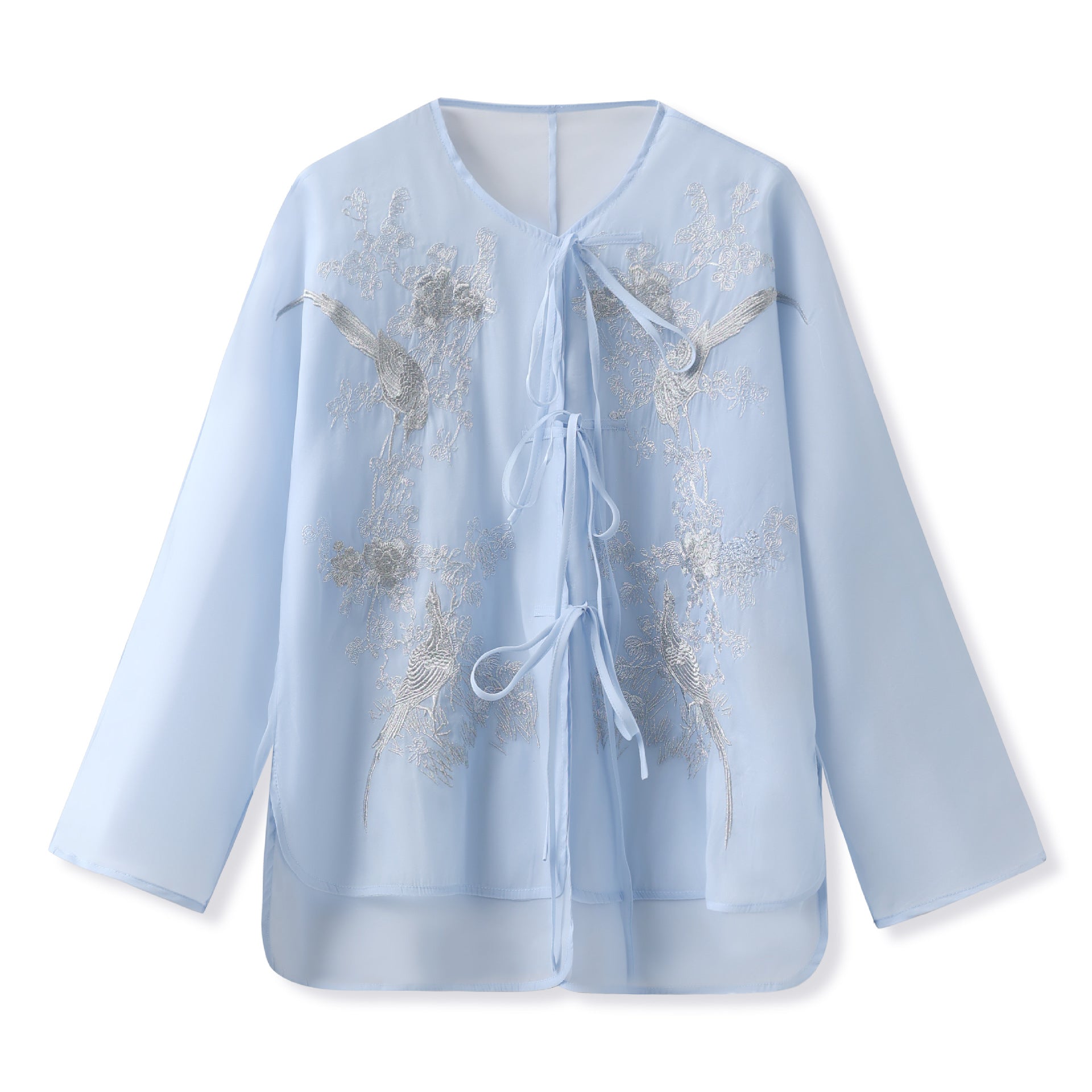 summer, national style light luxury printing beautiful retro mulberry silk celebrity style shirt high-end skirt set M6089