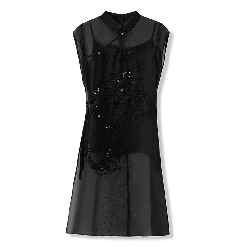 summer new new Chinese style embroidered long top half body yarn long skirt temperament set M4205