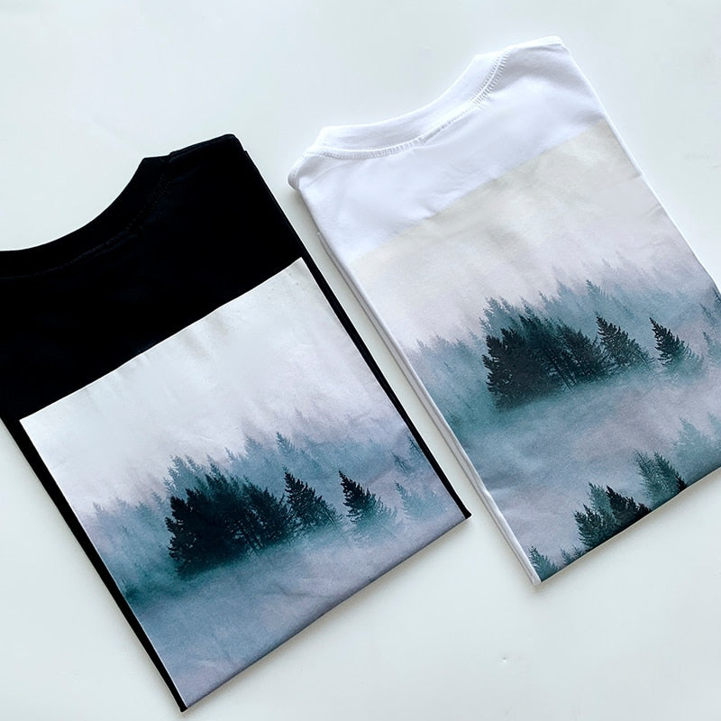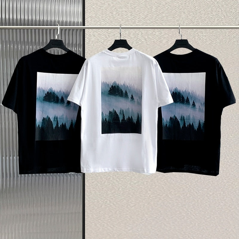 T-Shirts Men's High Street Hip Hop Loose Tees Oversize Unisex 100% Cotton back landscape print T-Shirt