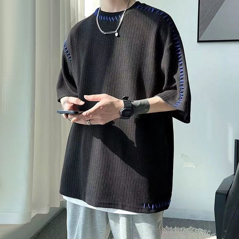 T-Shirts Thin Spring Summer Thin Straight Pullovers Solid Color Men's Clothing Fashion Casual Loose Handsome Round Neck Man