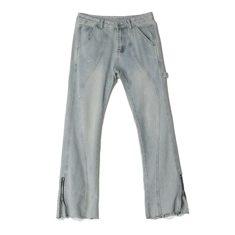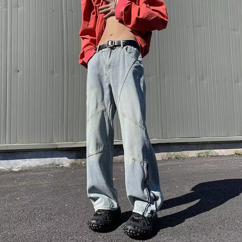 90s streetwear American Retro Zipper Jeans Men's Autumn and Winter 2024 New Washed Straight Flared Pants High Street Vibe