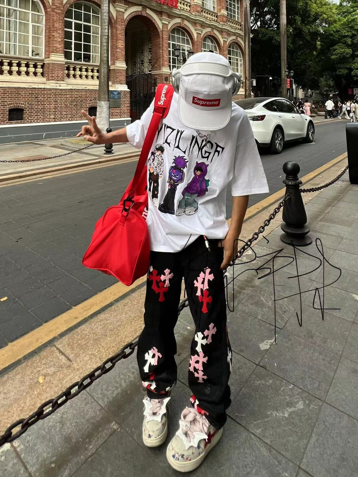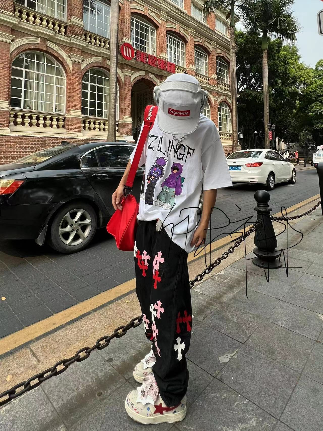 90s streetwear New Original American High Street Cross Jeans Patch All-Match Slim-Fit Stacked Pants Fashion
