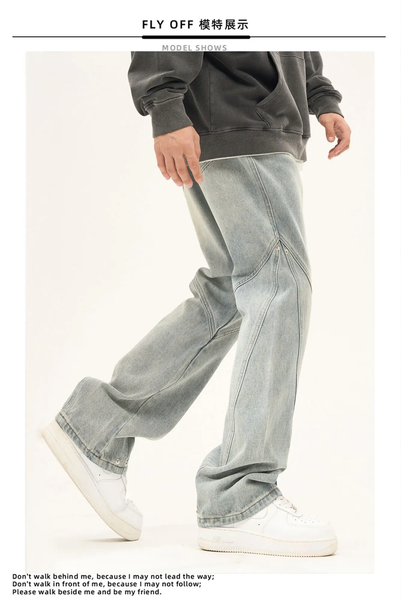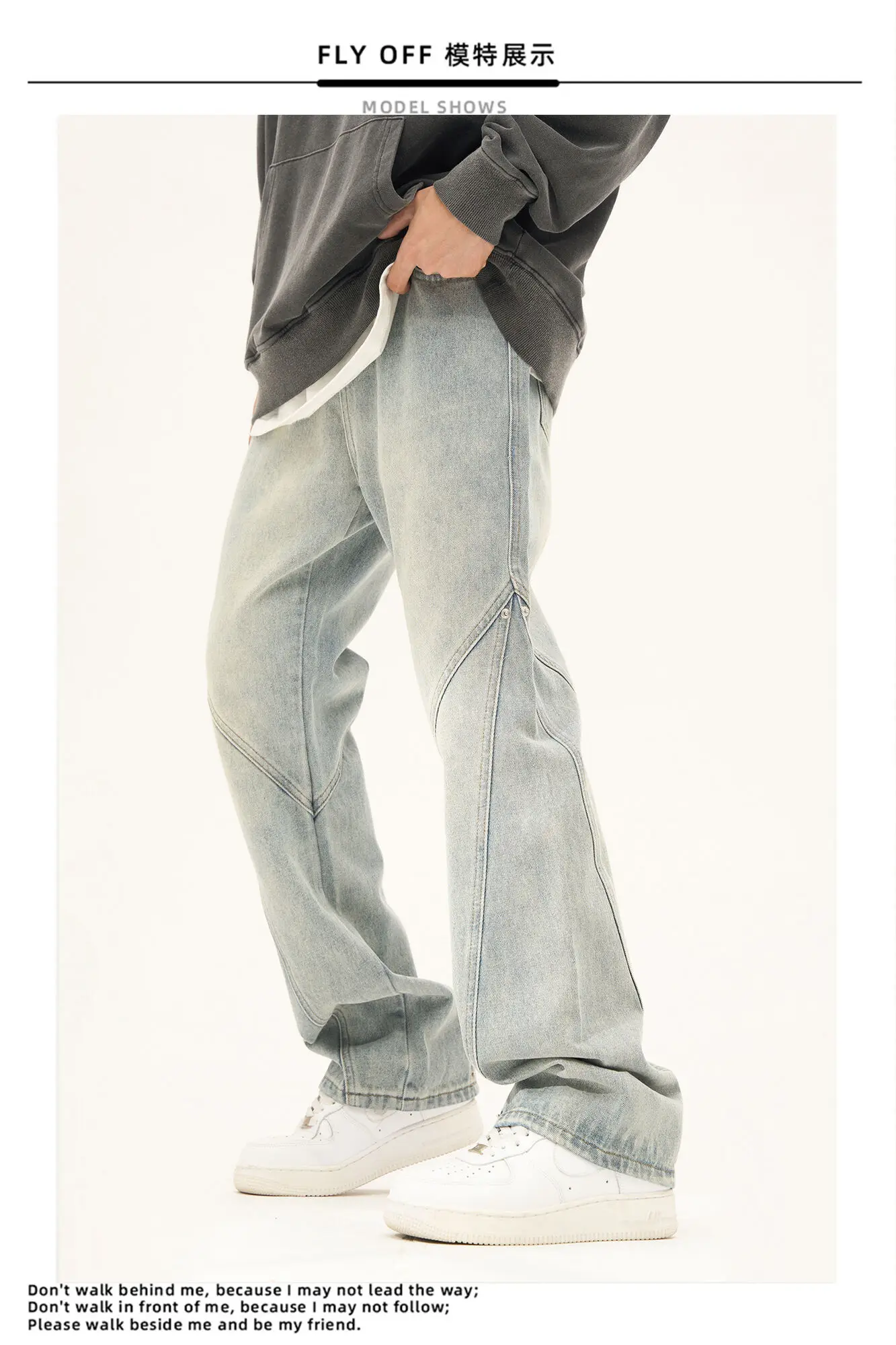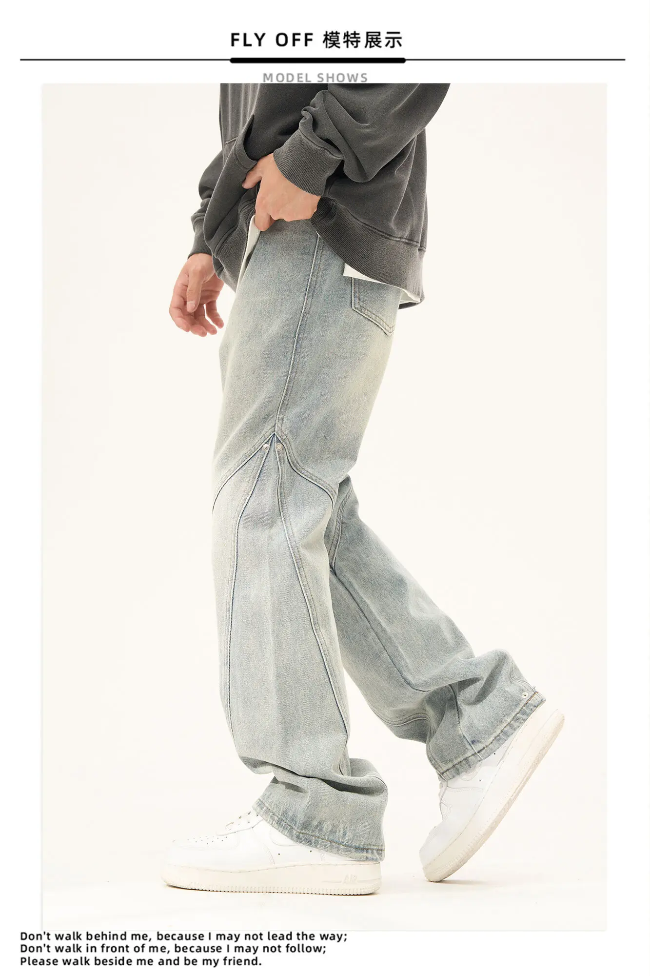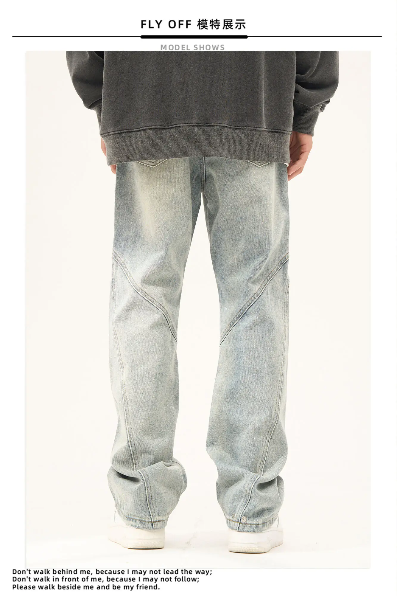 saferido American high street stitching light straight leg jeans with loose design and a sense of high-end hip-hop trendy pants