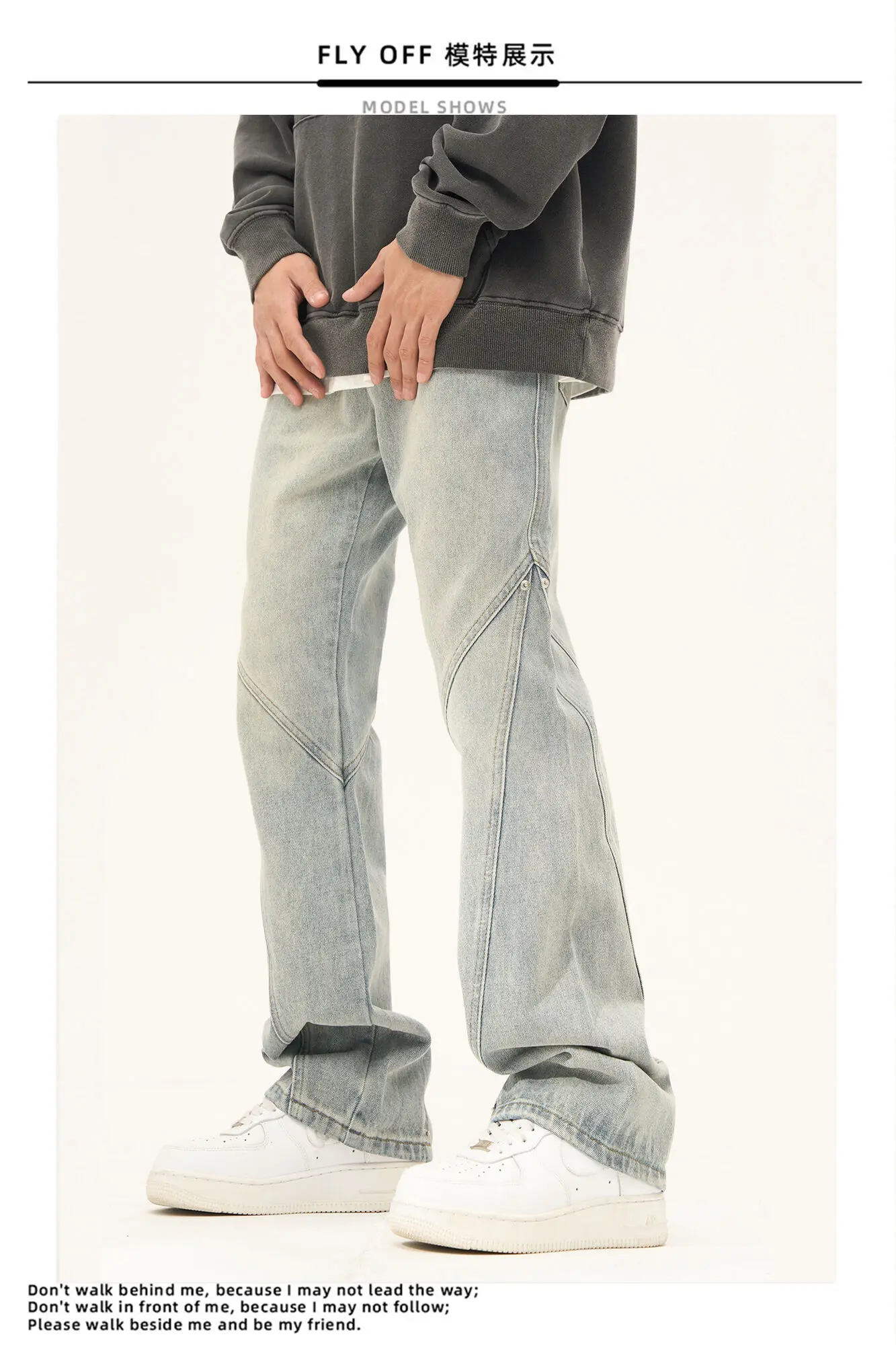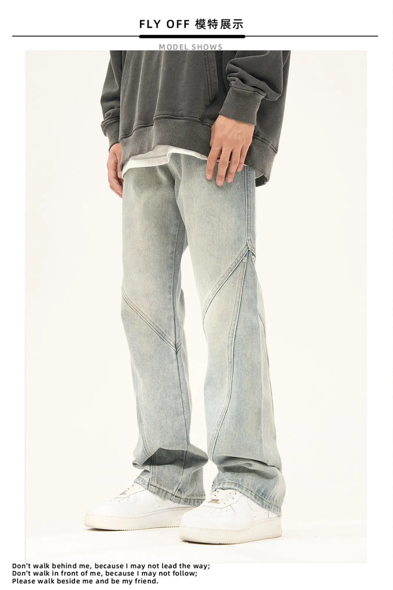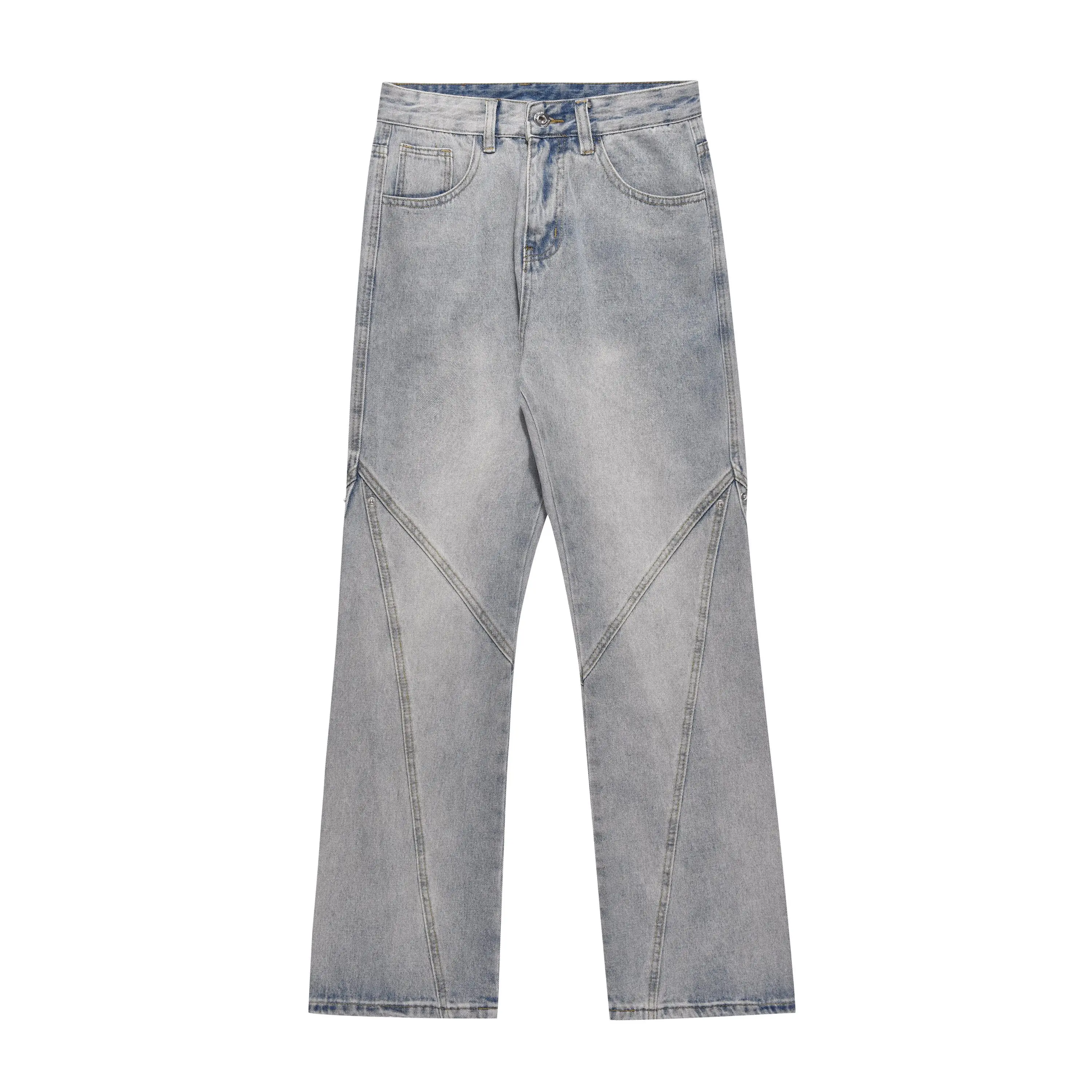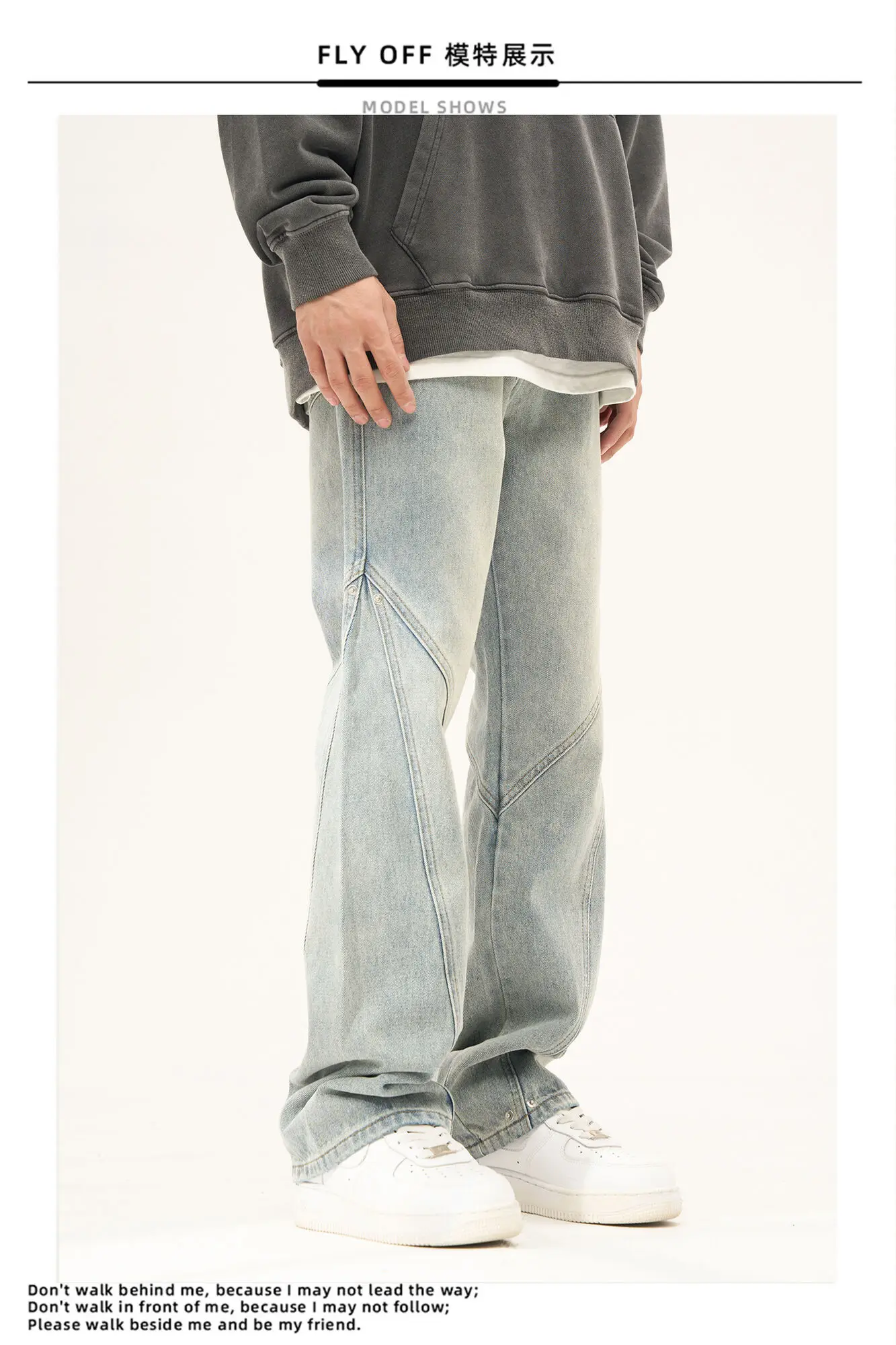saferido American high street stitching light straight leg jeans with loose design and a sense of high-end hip-hop trendy pants