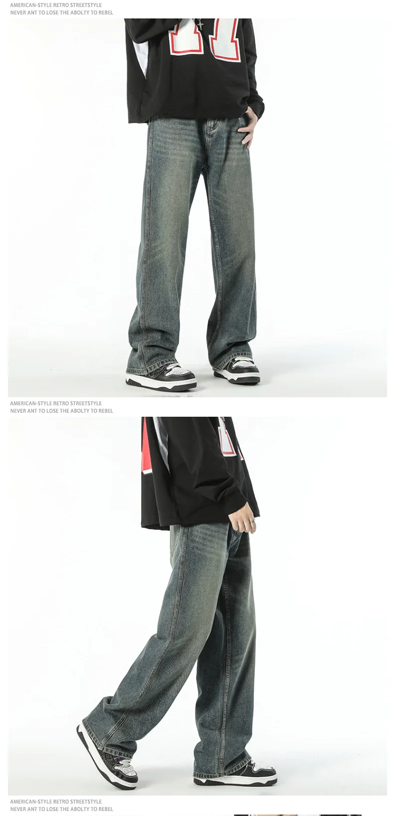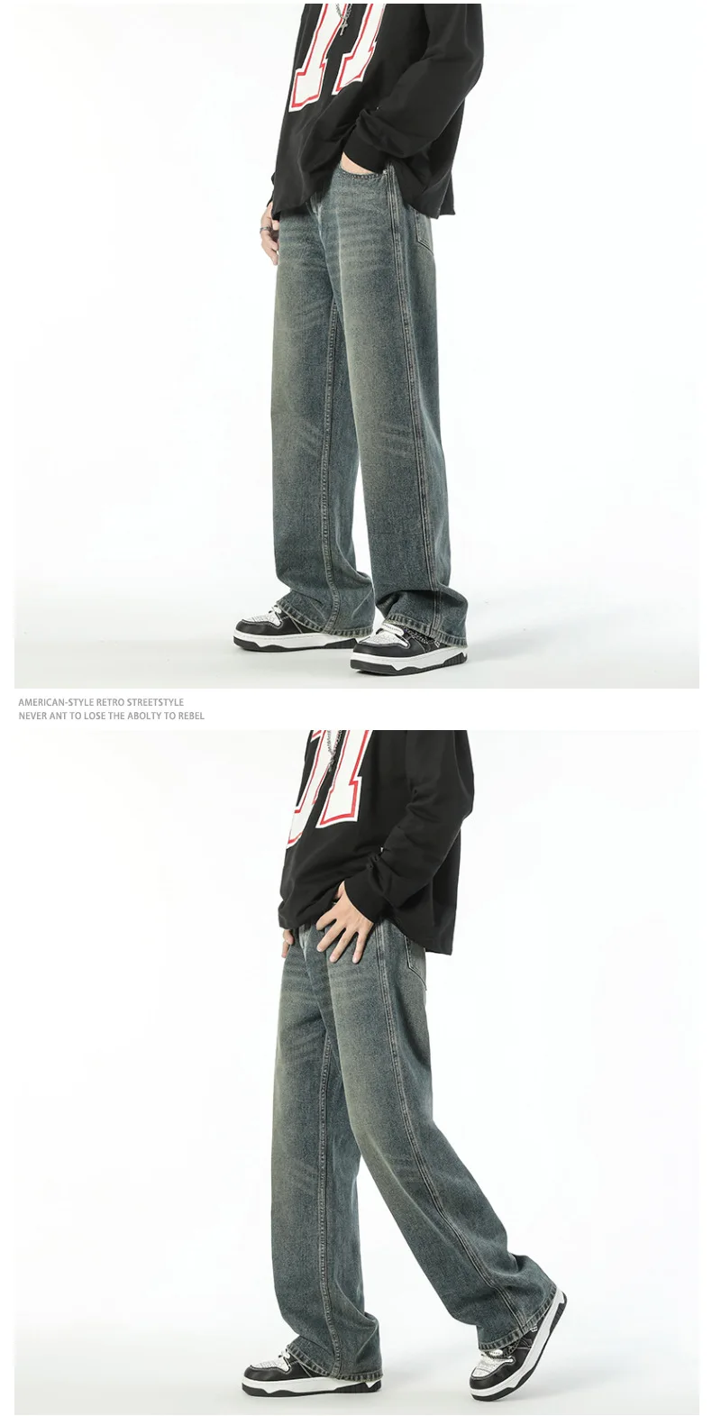 saferido American retro vintage vintage slightly flared jeans men's loose spring and autumn floor pants