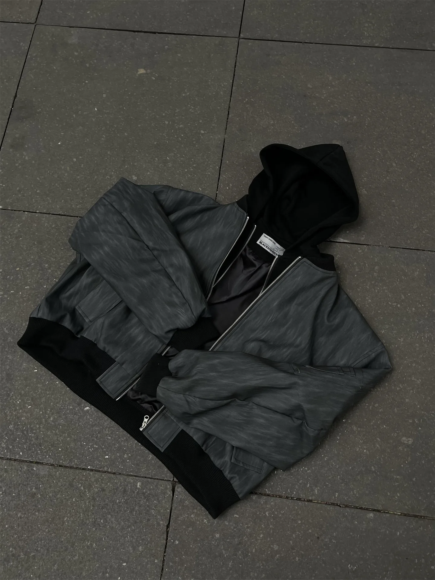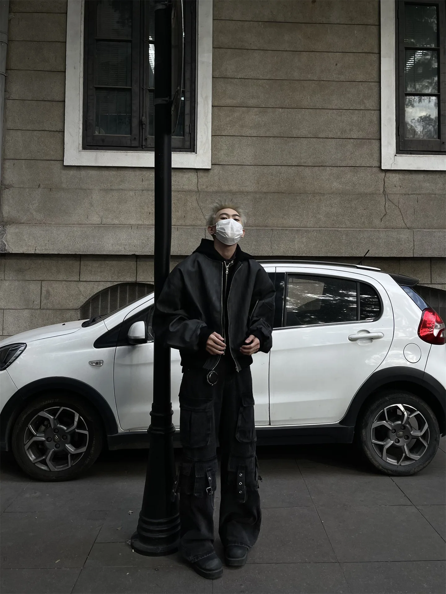 Threebooy American retro workwear jacket men's spring autumn new design fake two-piece hooded leather jacket top