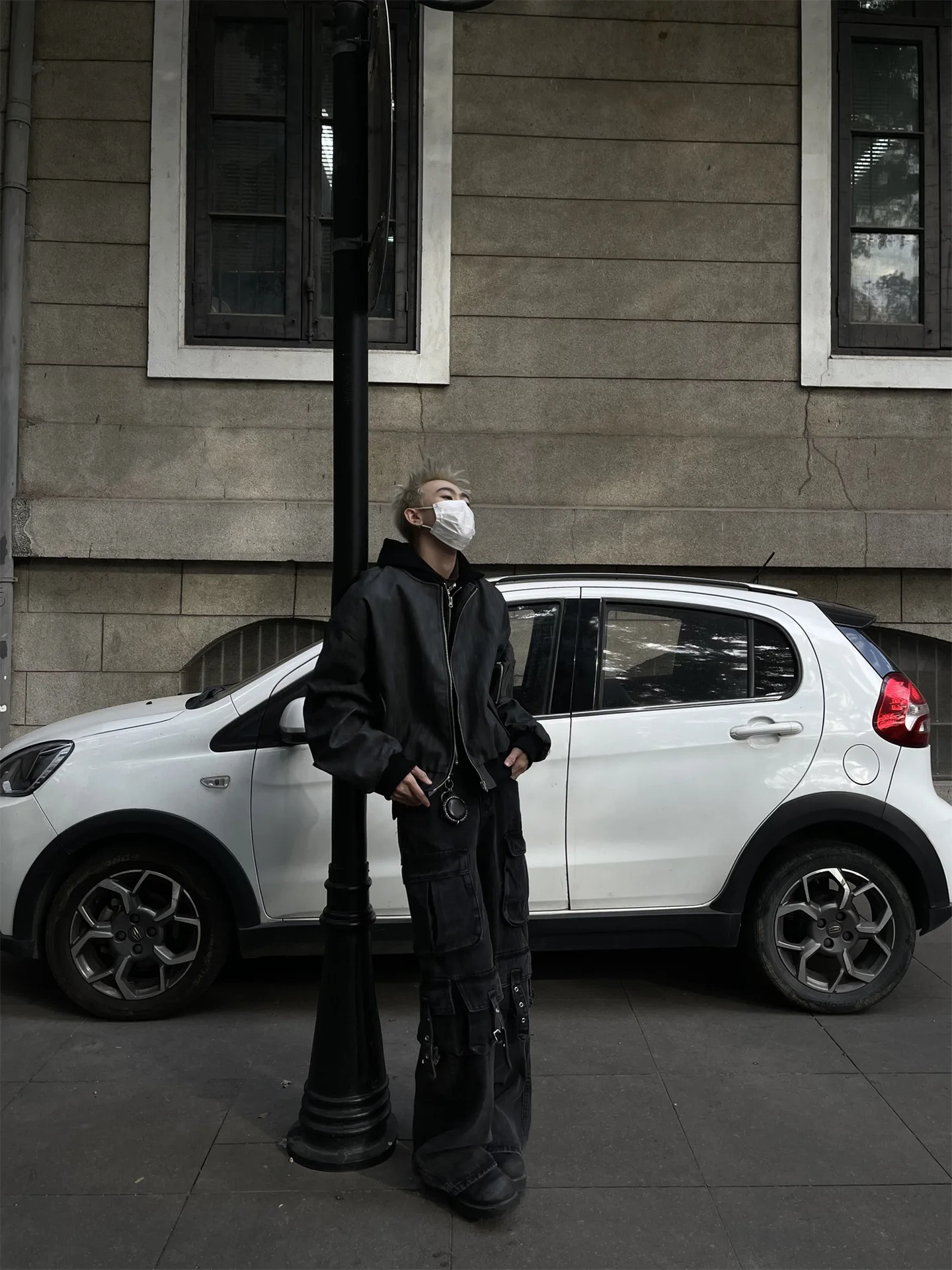 saferido American retro workwear jacket men's spring autumn new design fake two-piece hooded leather jacket top