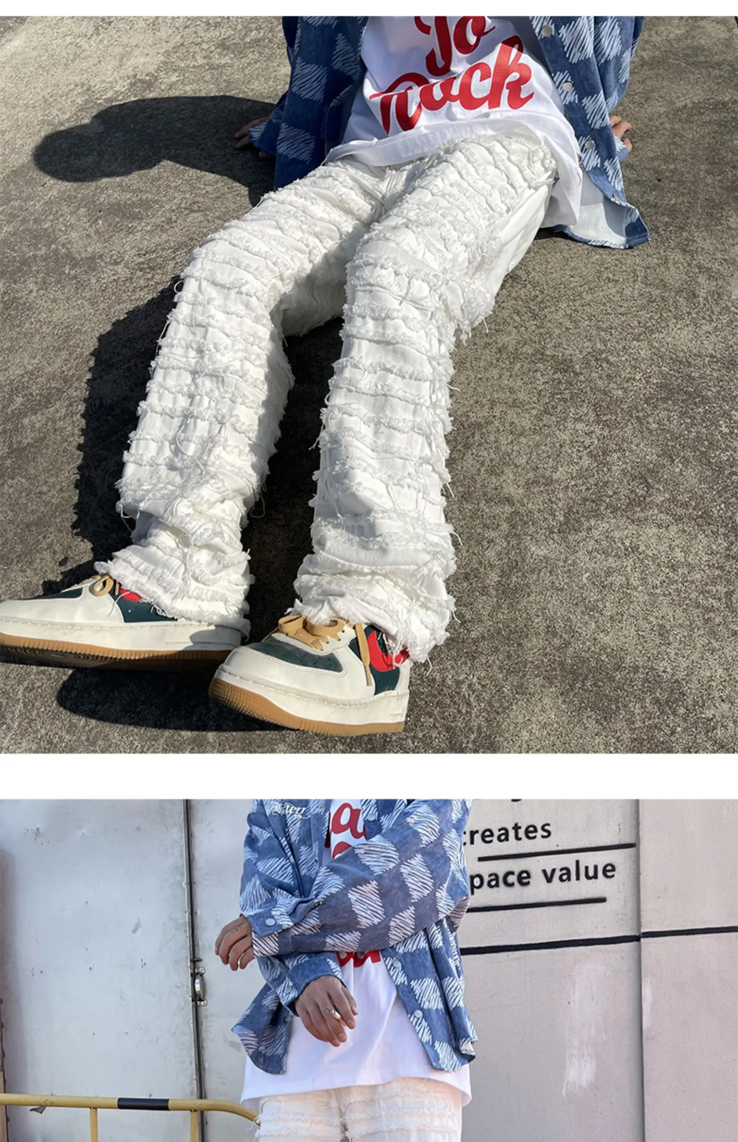 saferido American Street Hip-hop Heavy Industry Ripped Men's Jeans Spring Straight Loose Vibe Style Skateboard White Flared Pants