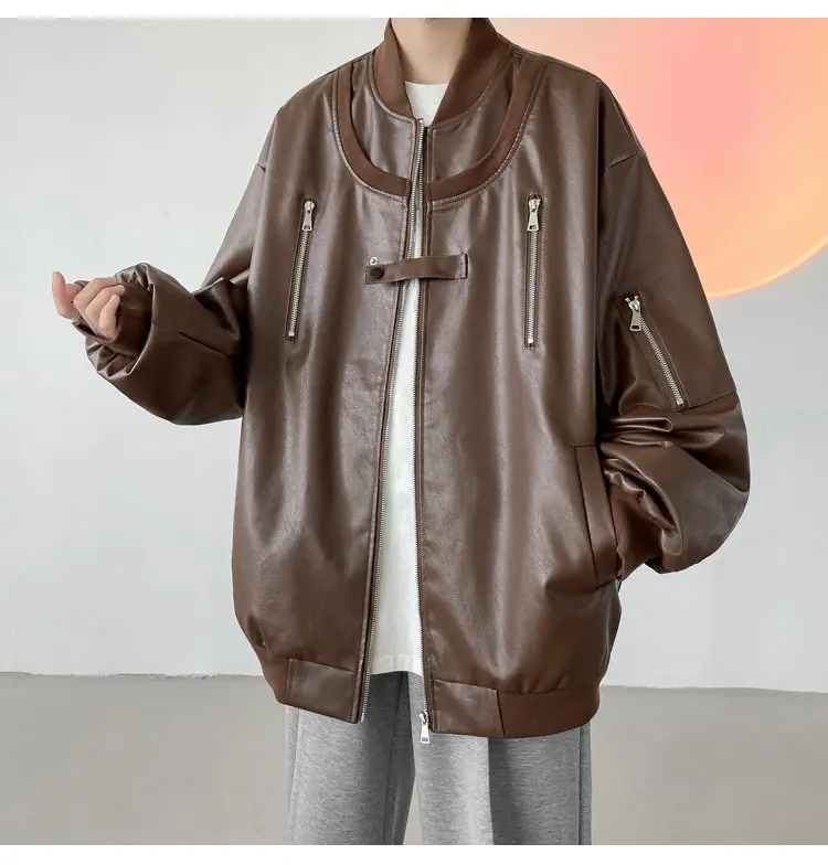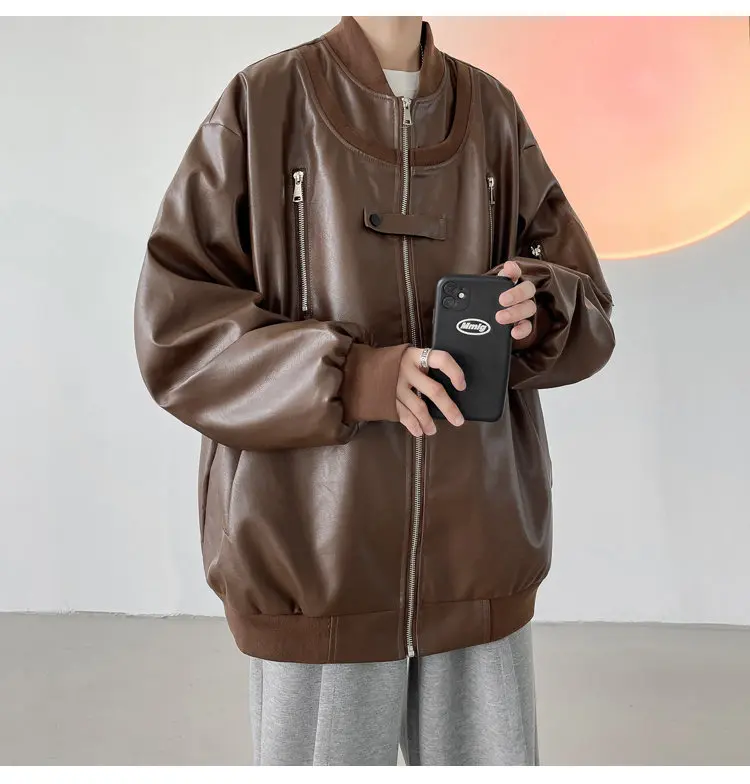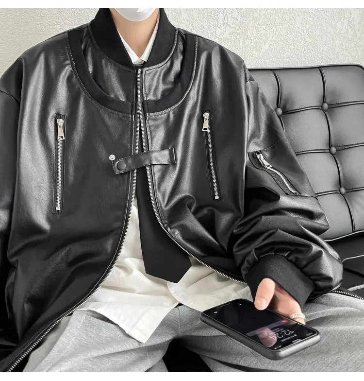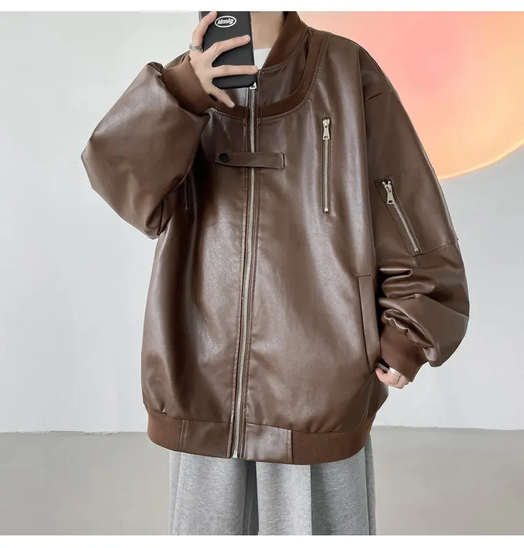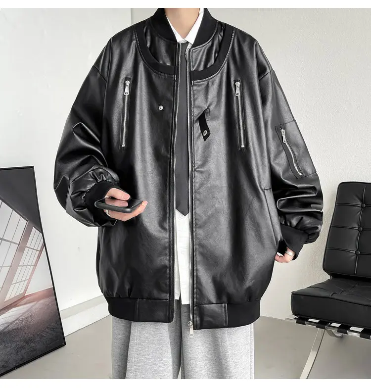 Threebooy Clothing Leather Jackets for Men Japanese Vintage Clothes Men's Spring Jackets Motorcycle Coat Bomber Male Coats Man