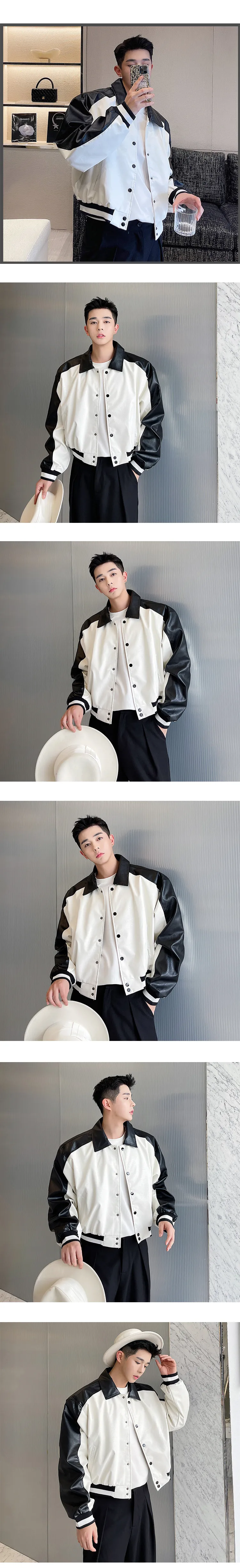 Threebooy Korean Street Dress Hip Hop Spring Autumn Black White Design Motorcycle Leather Men's Jacket Jacket Short Baseball Coat