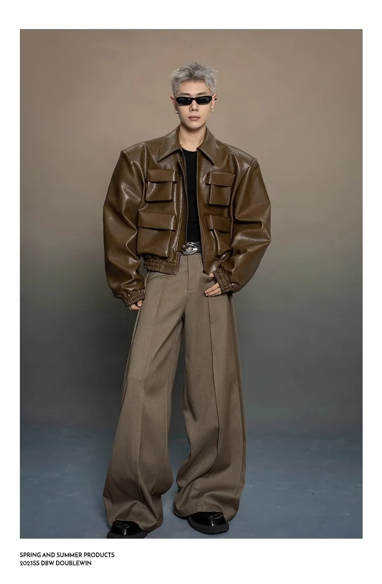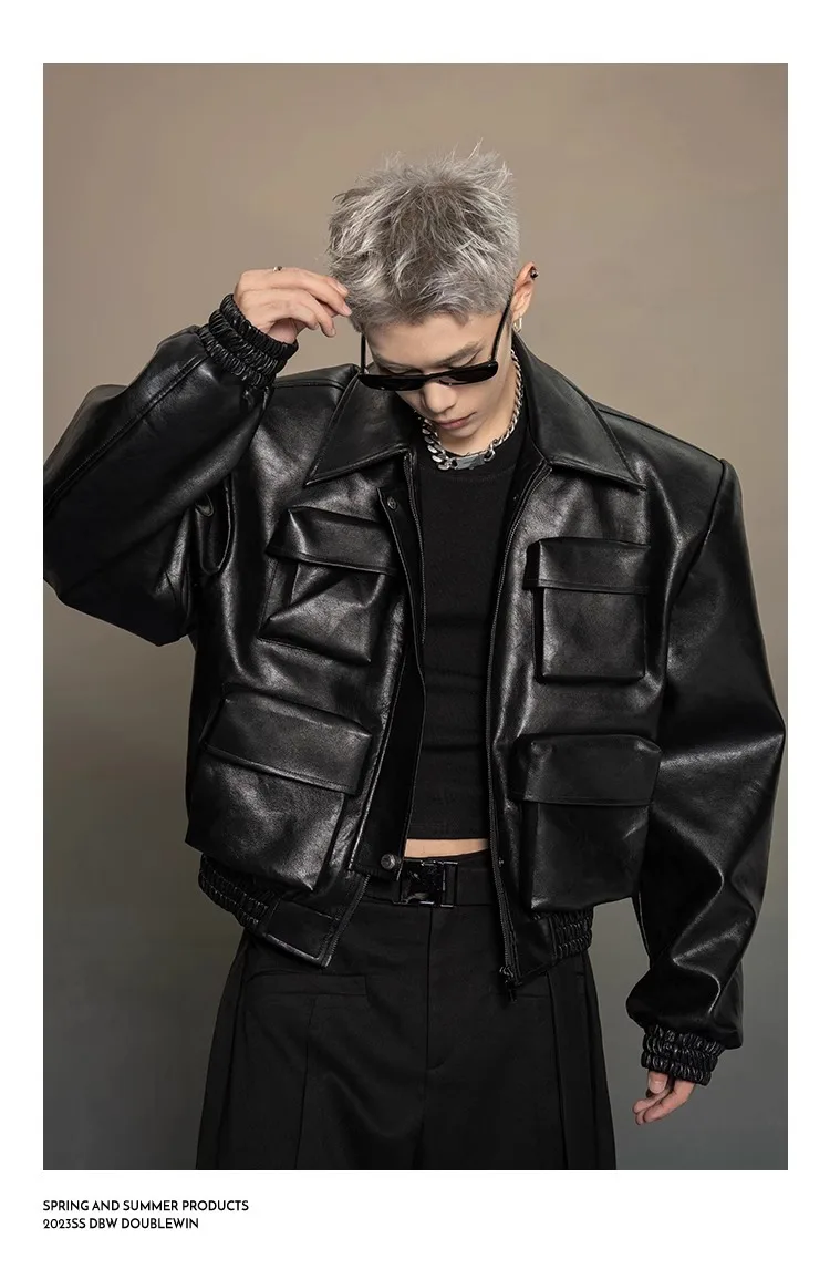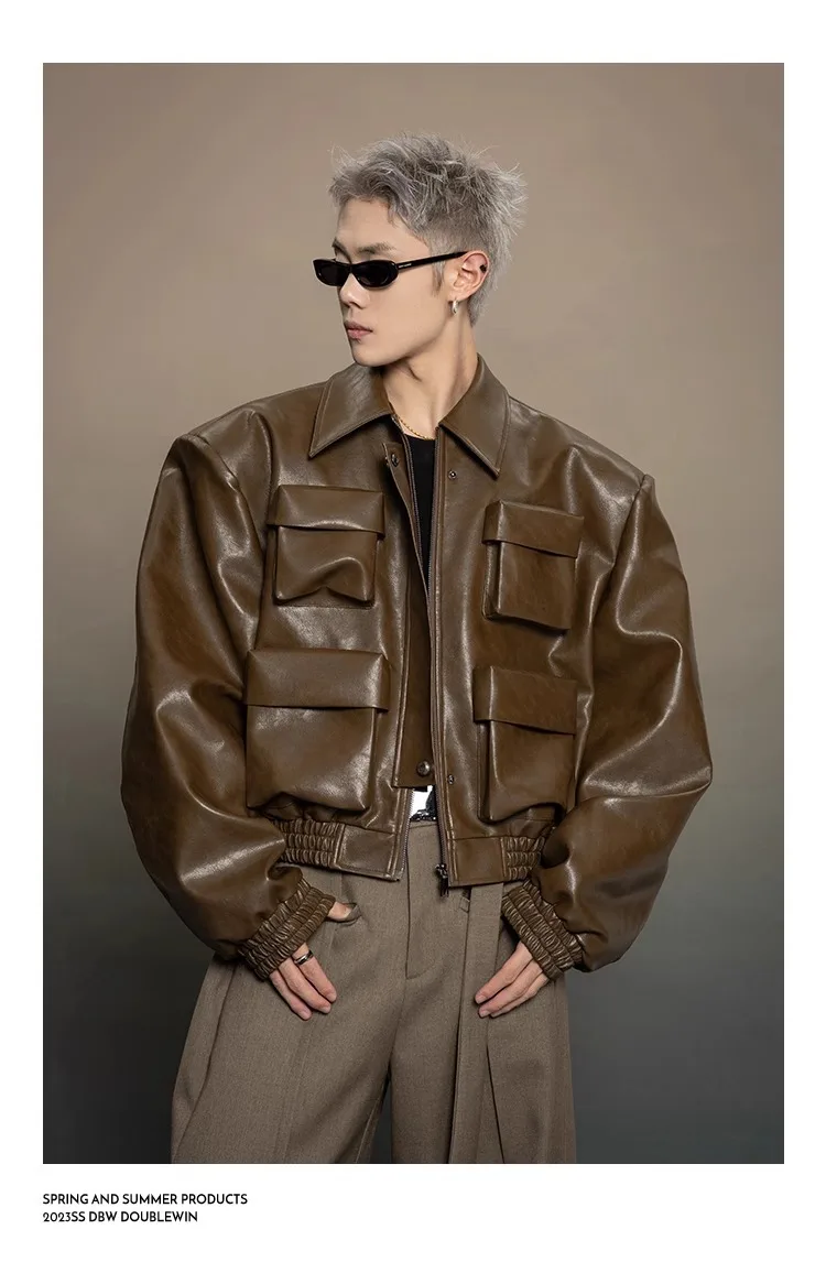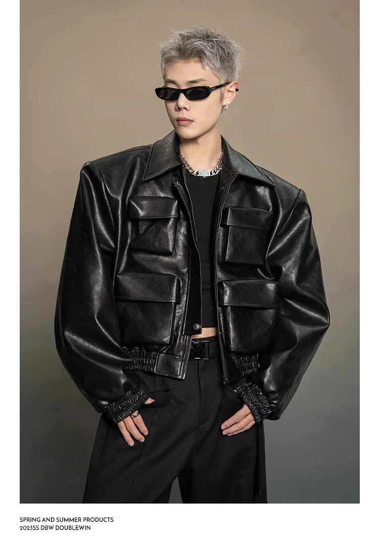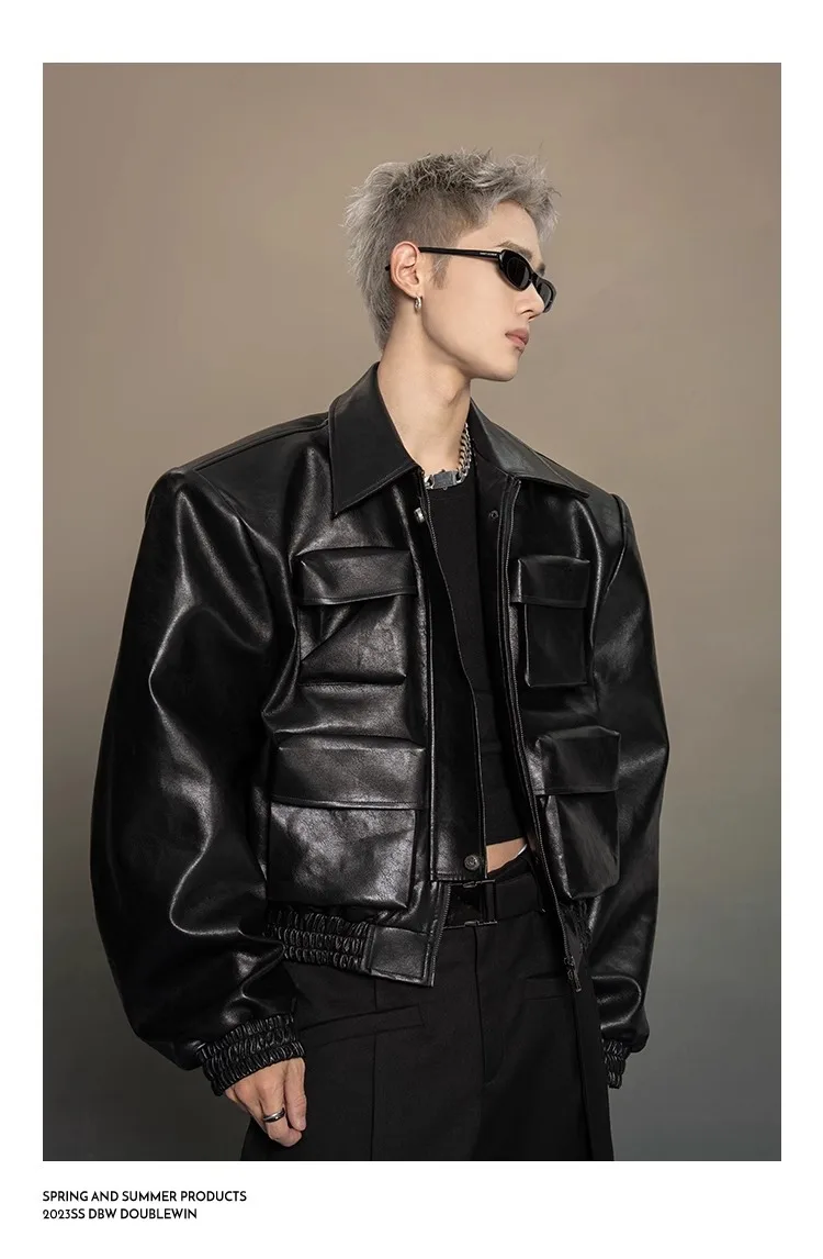 Threebooy Korean version leather jacket men's spring autumn new loose casual versatile jacket top