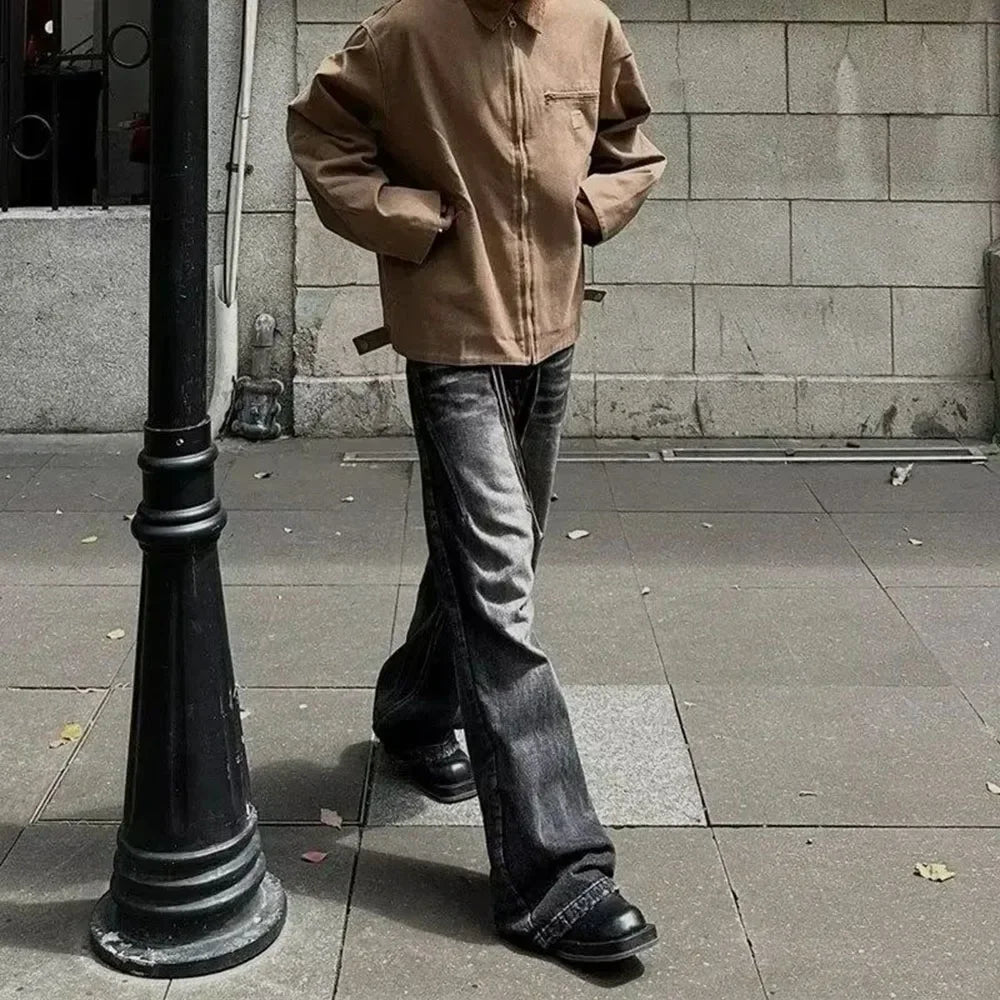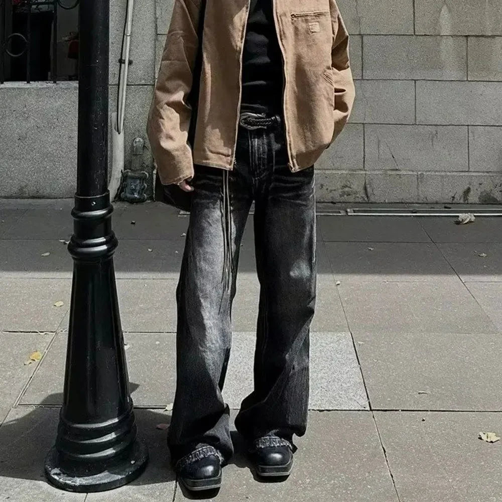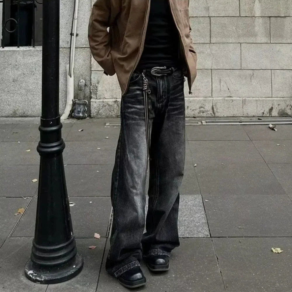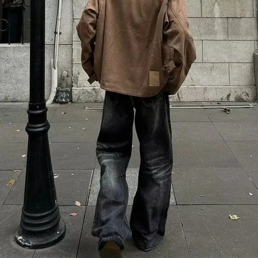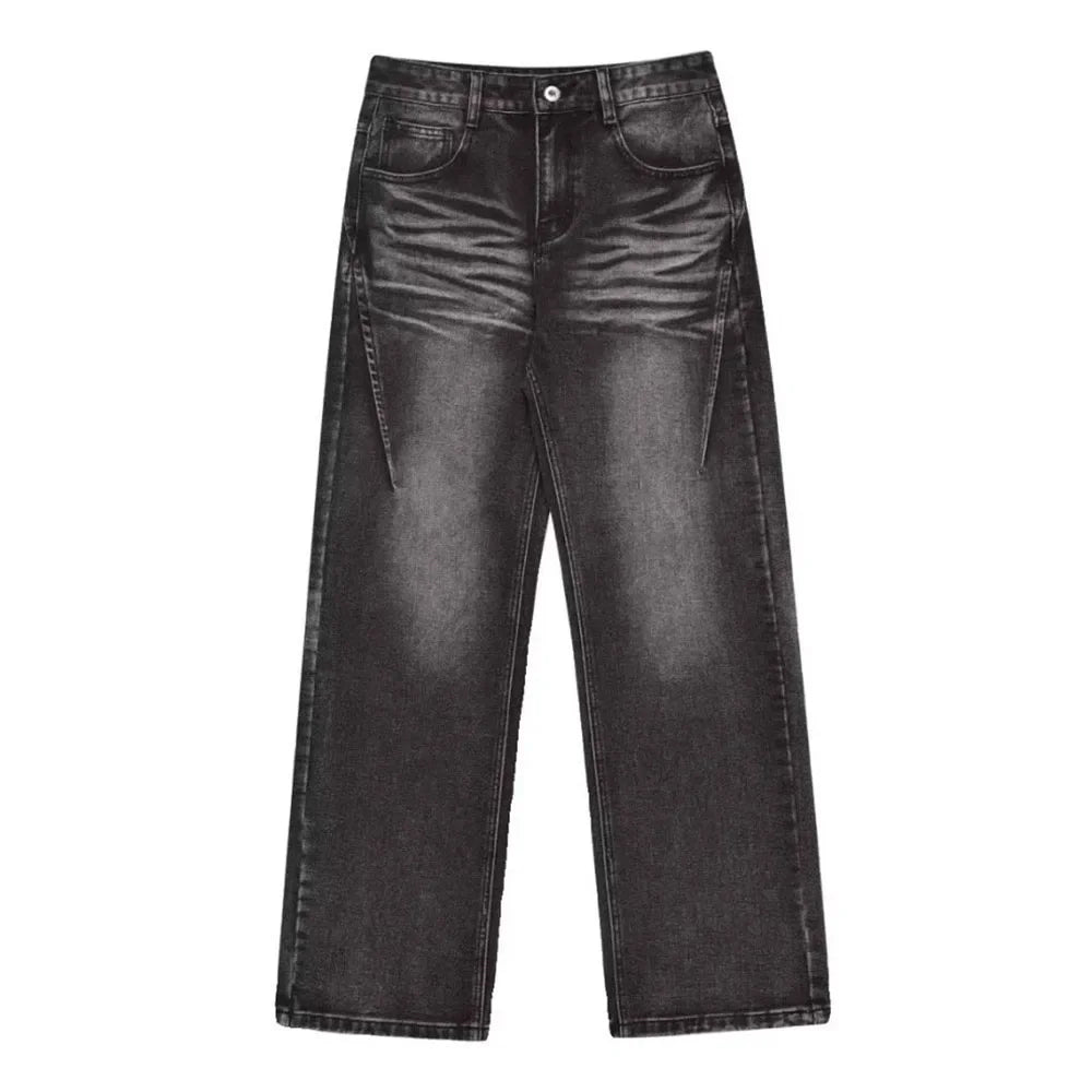saferido Men Casual Solid Color Jeans Streetwear Daily Personality American Retro Versatile Simple Wide-leg Pants Men's Clothing 2024 New