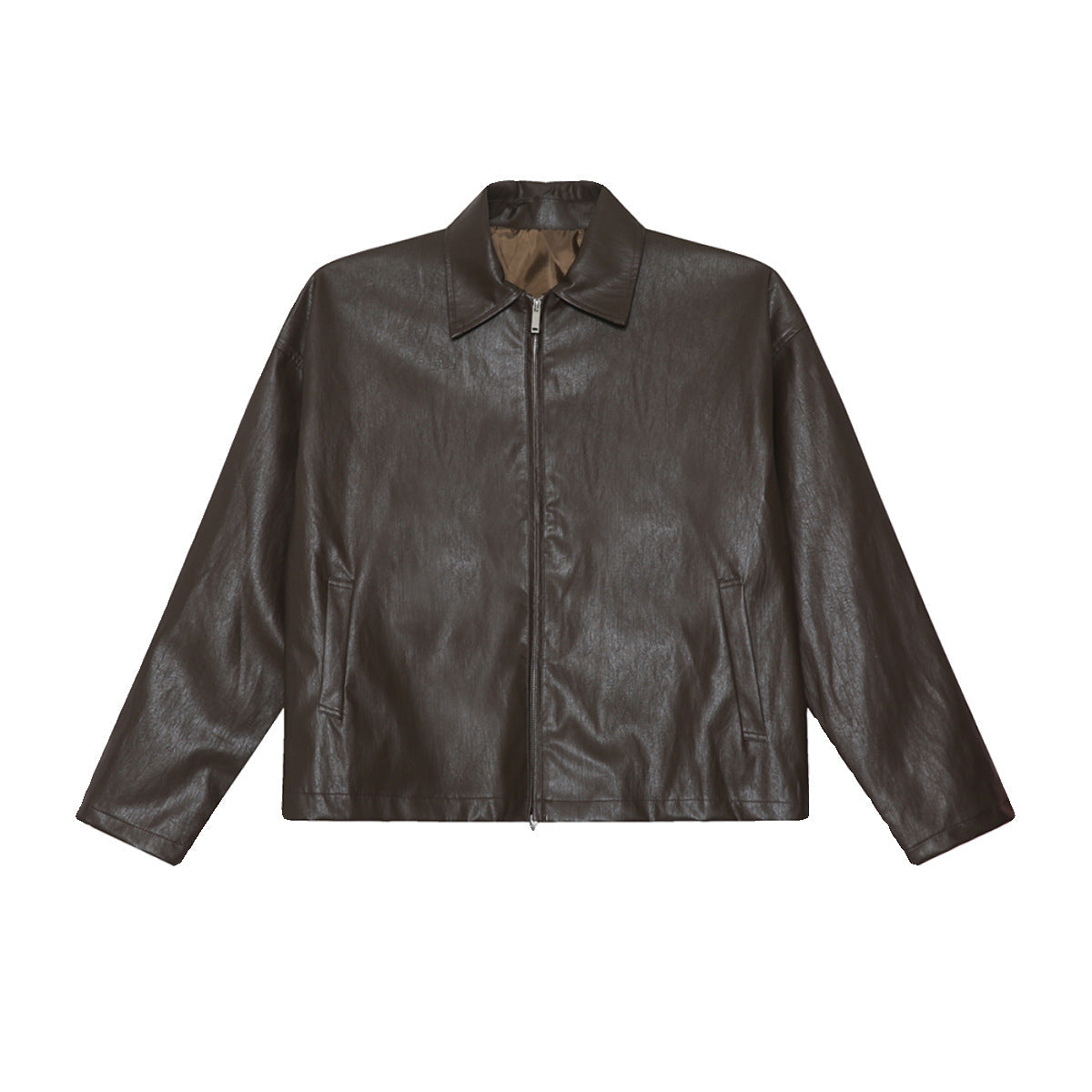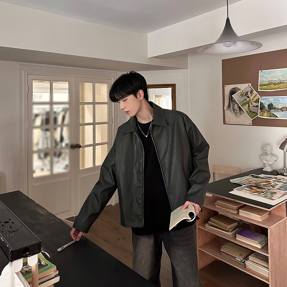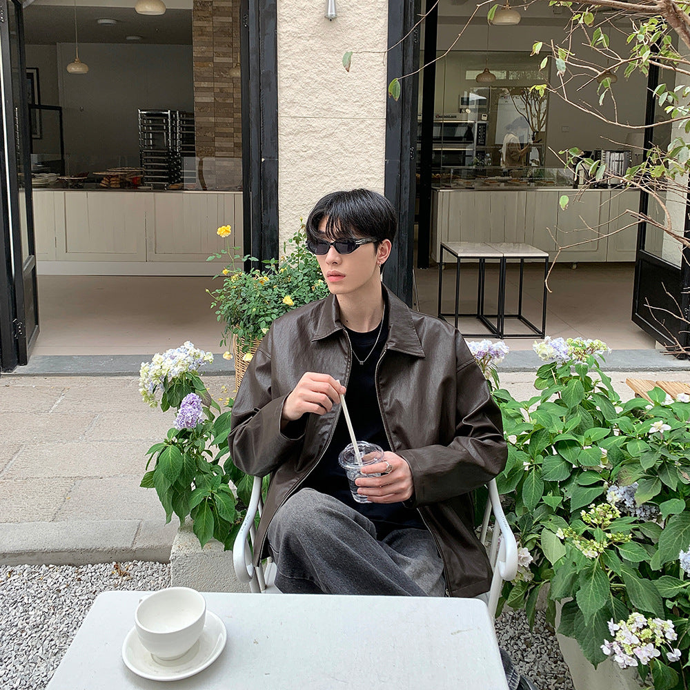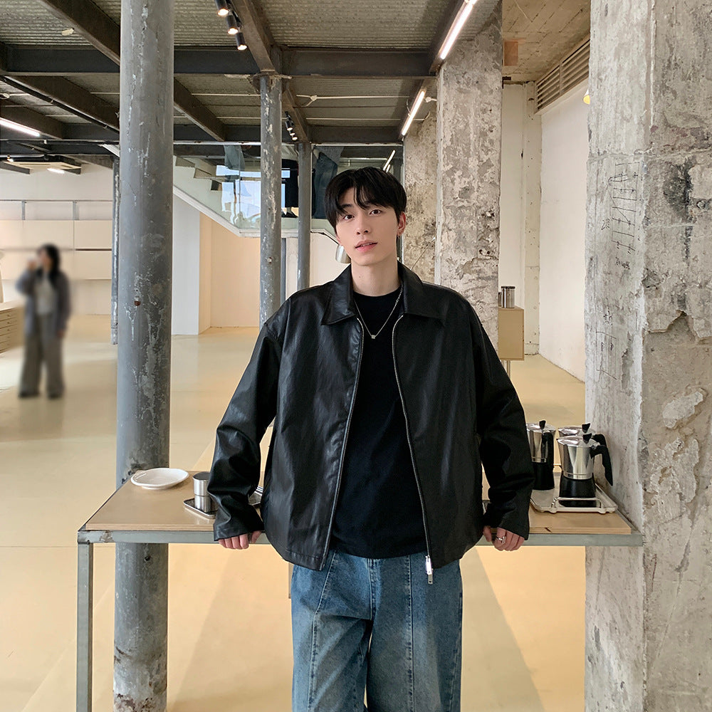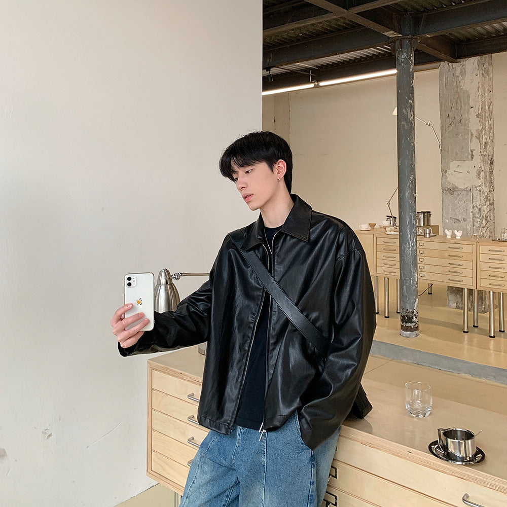 men fall outfits casual High-Grade PU Leather Minimalist Jacket Men's Spring and Autumn 2024 New Short Lapel Retro Loose Leather Top
