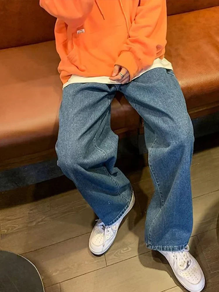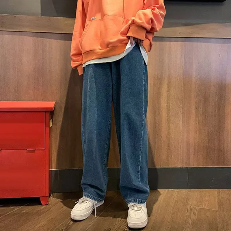 Threebooy Men Hip Hop Loose Straight Pants Early Spring Korean Fashion Casual Straight Oversize Wide-Leg Trousers Male Baggy Washed Pant