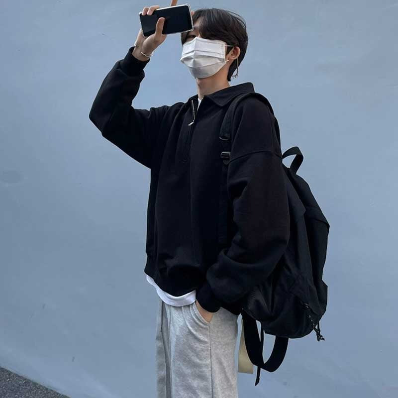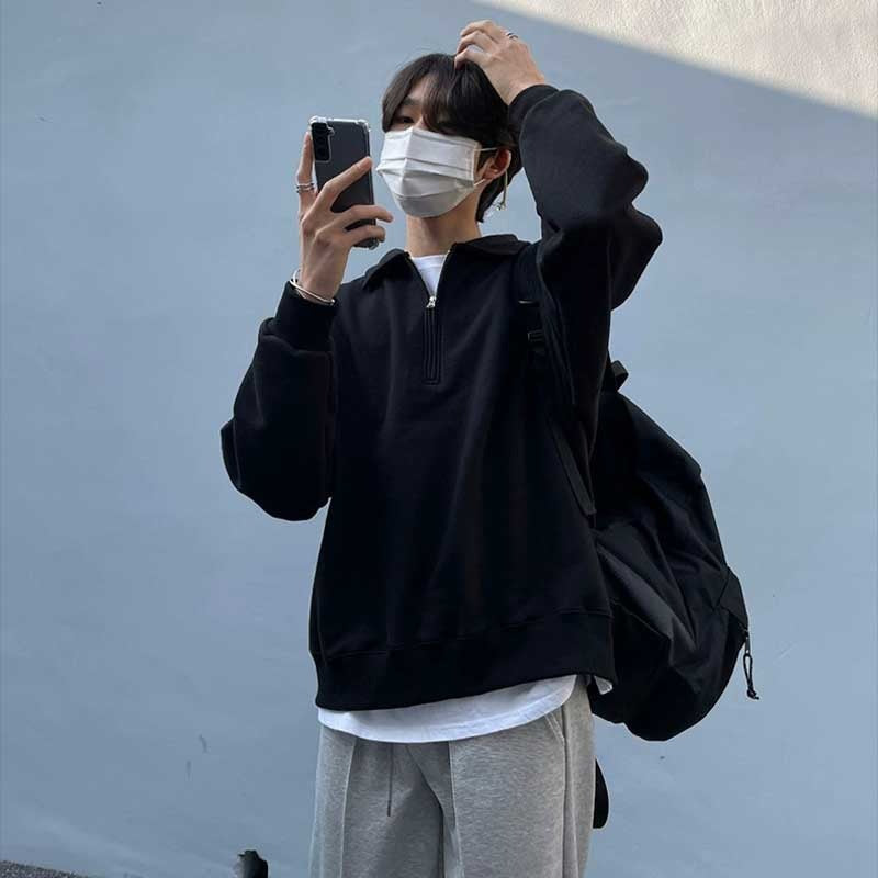 men’s haircut Basic Men's Pullover Sweater Half-Open Zipper Lapel Simple All-Match Coat Korean Spring Solid Color Long-Sleeved Top