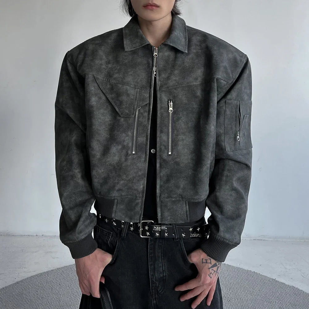 saferido Mens Autumn Winter American Street Retro Distressed Suede Jacket Gender-Neutral Short Loose Casual Trend Biker Jacket Unisex