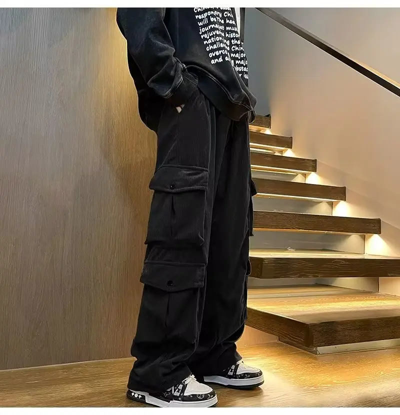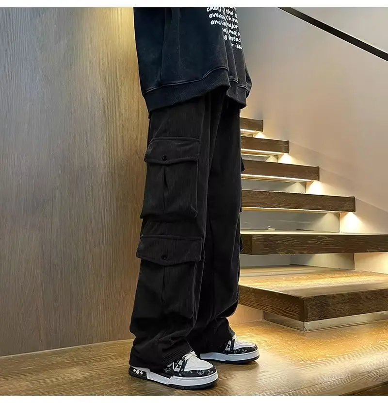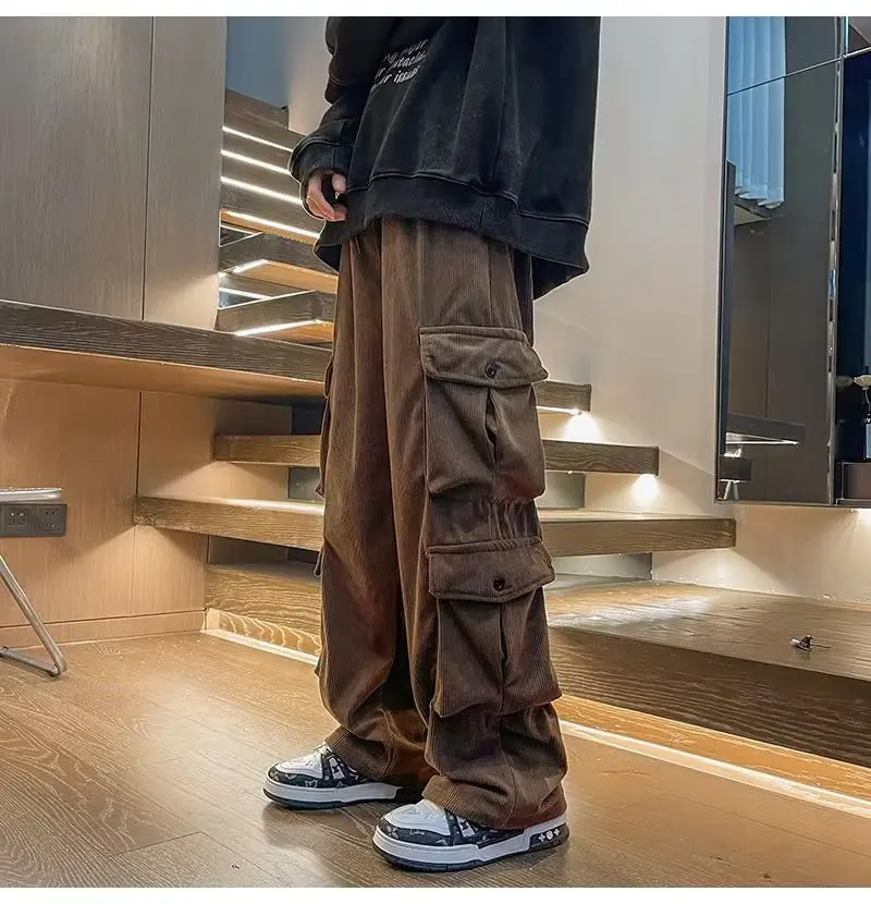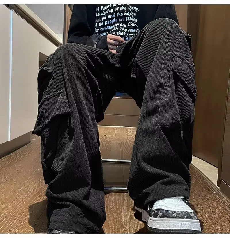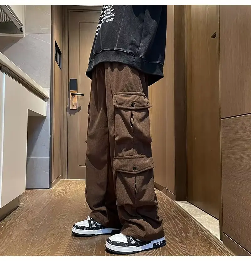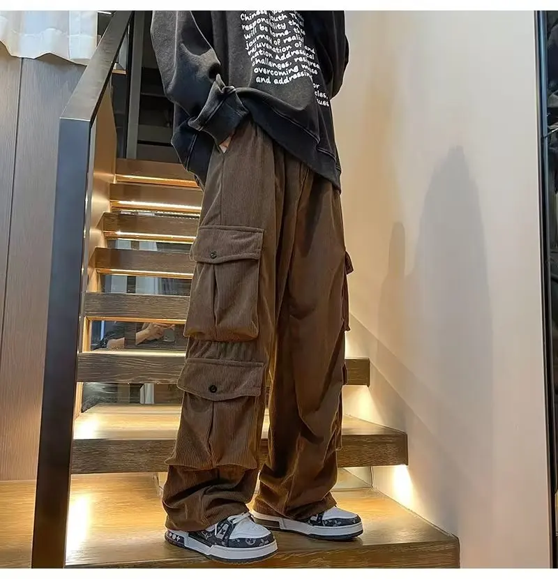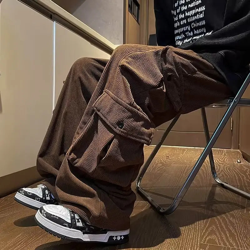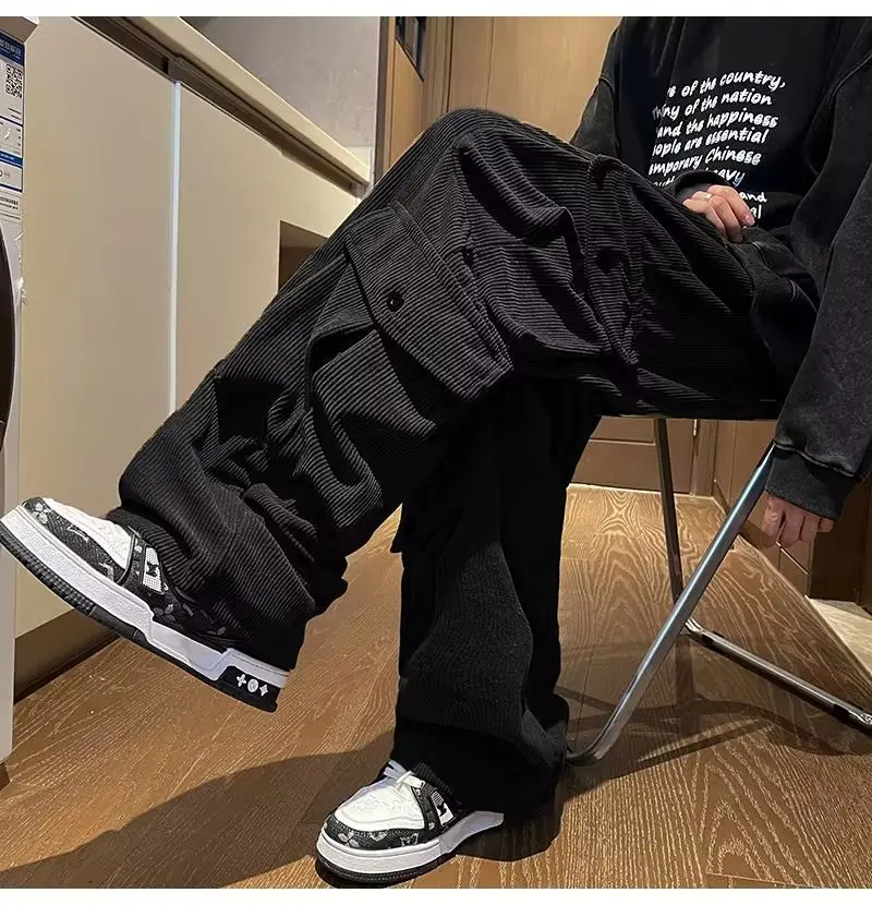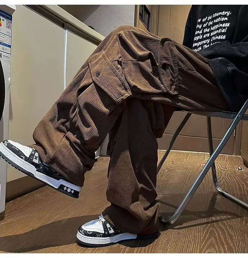 saferido Men's Casual Pants Loose Straight Corduroy Pants Elastic Waist Sweatpants Fashion Streetwear Spring Men Sports Jogger Trousers