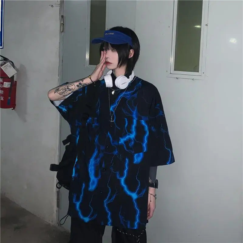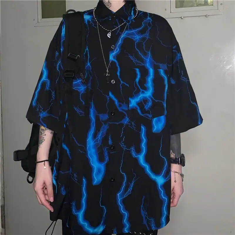 Threebooy Men's Clothing Handsome Temperament Loose Turn-down Collar Printing Button Short Sleeve Spring Summer Man Casual Shirts