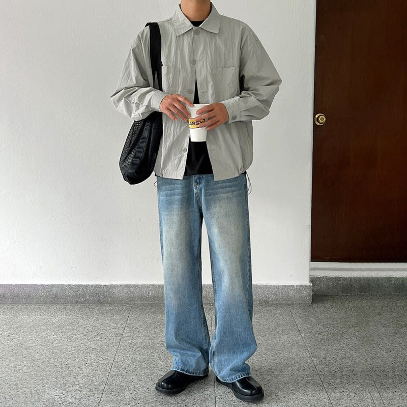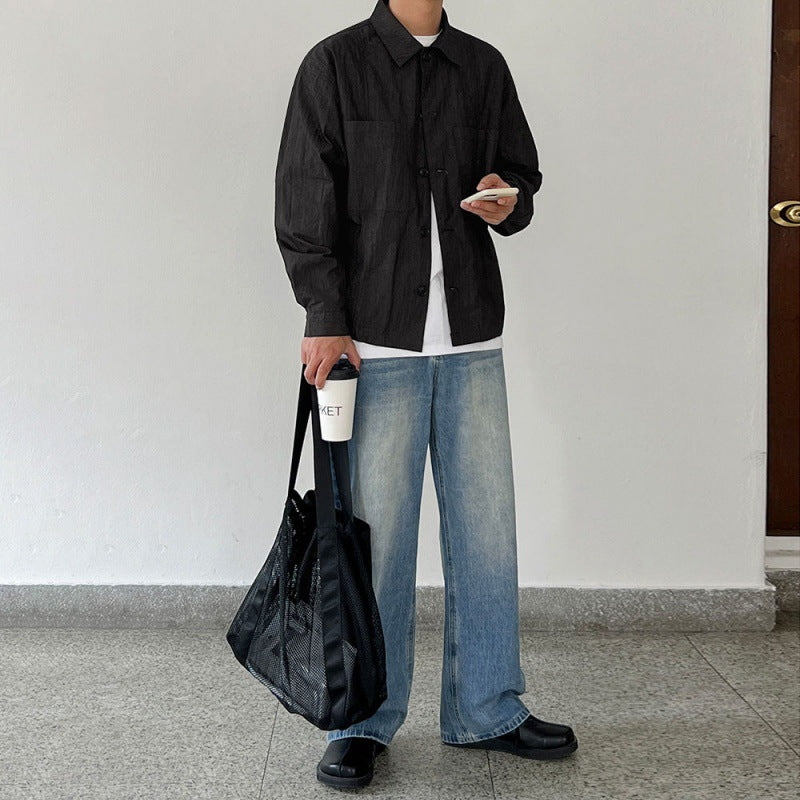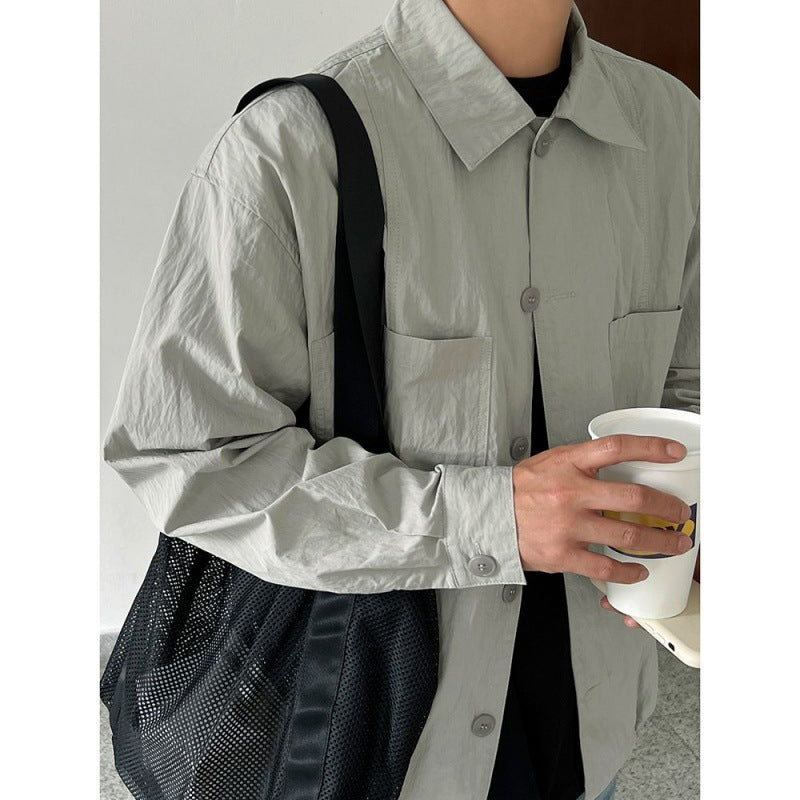 mens fall fashion Myq Japanese Retro Workwear Shirt Coat Men's Spring New Lapel Jacket Korean Style Loose Casual Top