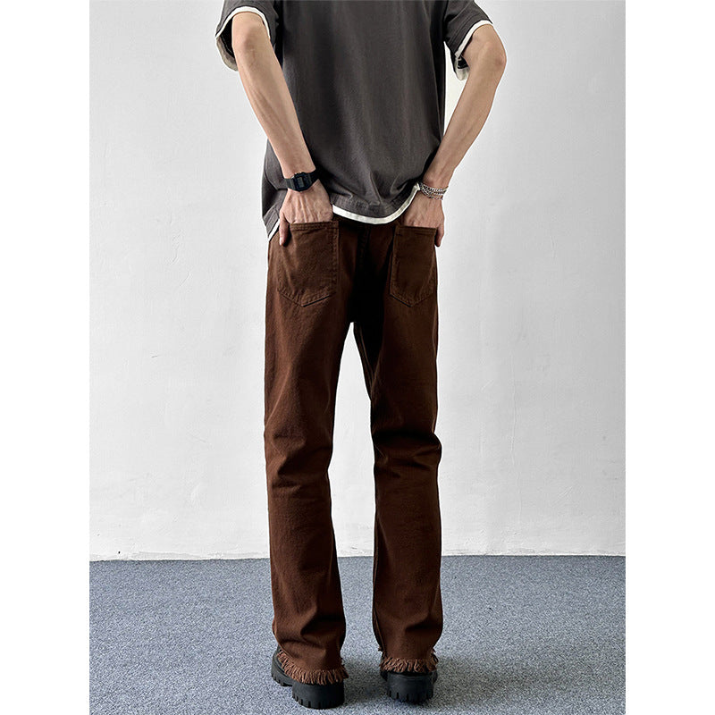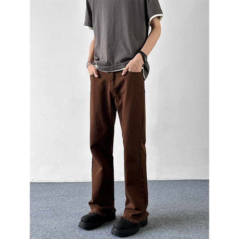 mens fall fashion Vintage Jeans Men's Spring American Style Loose Nostalgic Blue Straight Pants Washed Distressed Versatile Wide Leg Trousers