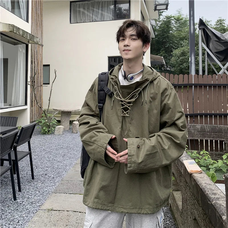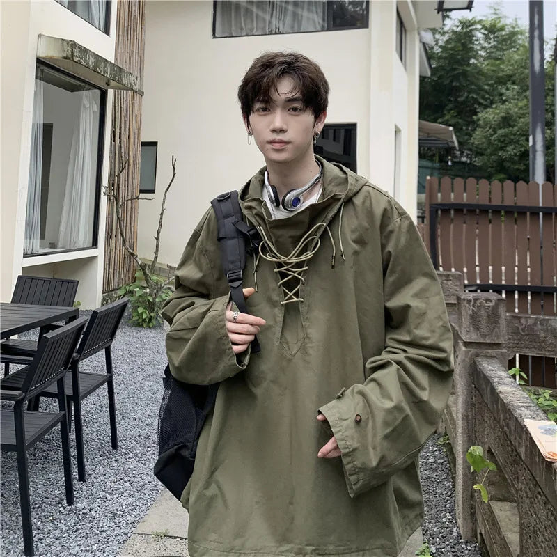 saferido Men's Fashion Bandage Hoodie Spring and Autumn Harajuku Hooded Jacket Youth Loose Streetwear Lounge Wear Korean Men's Clothing
