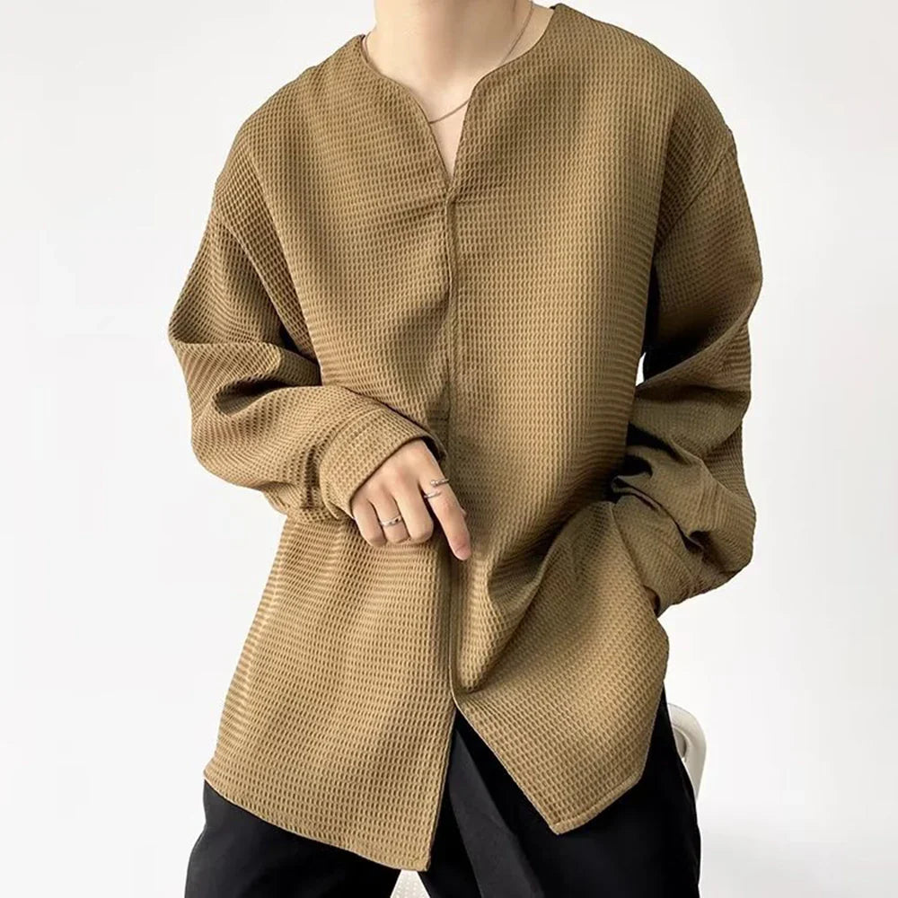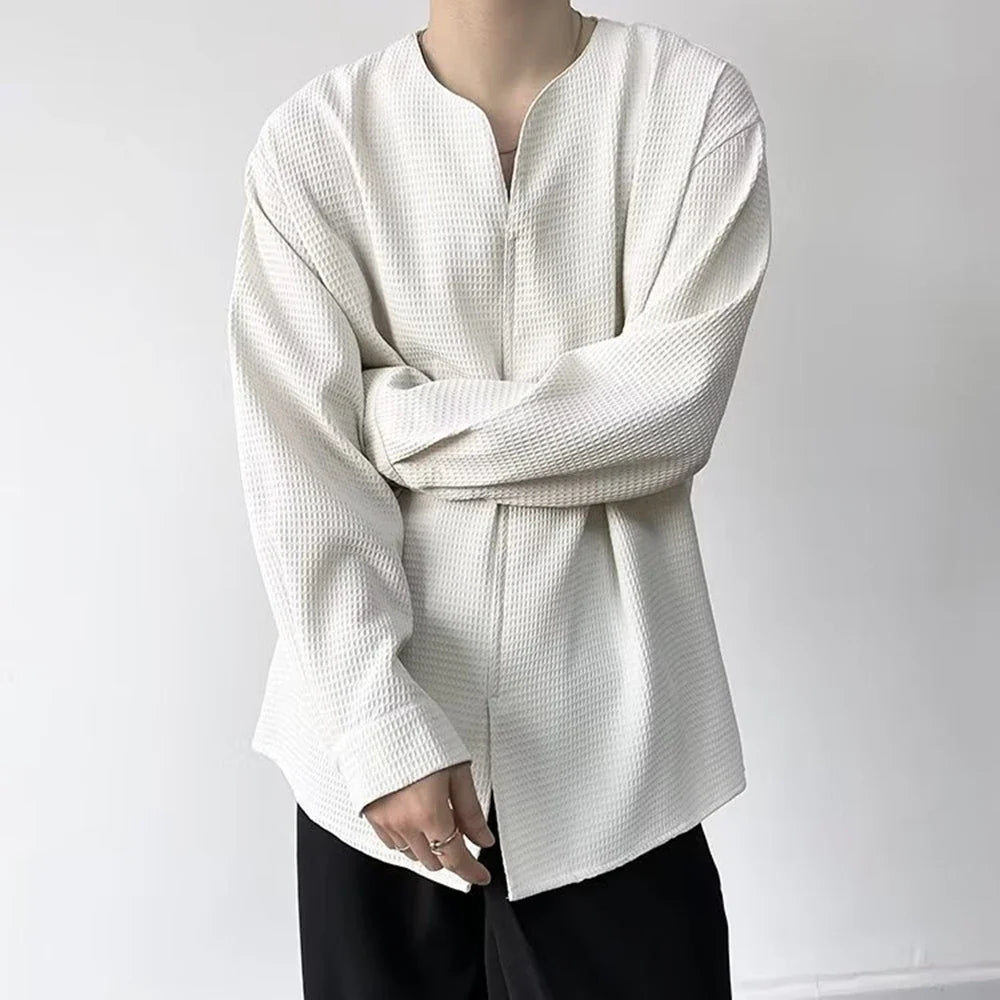 Threebooy Mens Harajuku Irregular Shirt 2024 Spring New Fashion Goth Handsome Loose Oversized Lapel Fashion Long Sleeve Cloak Unisex