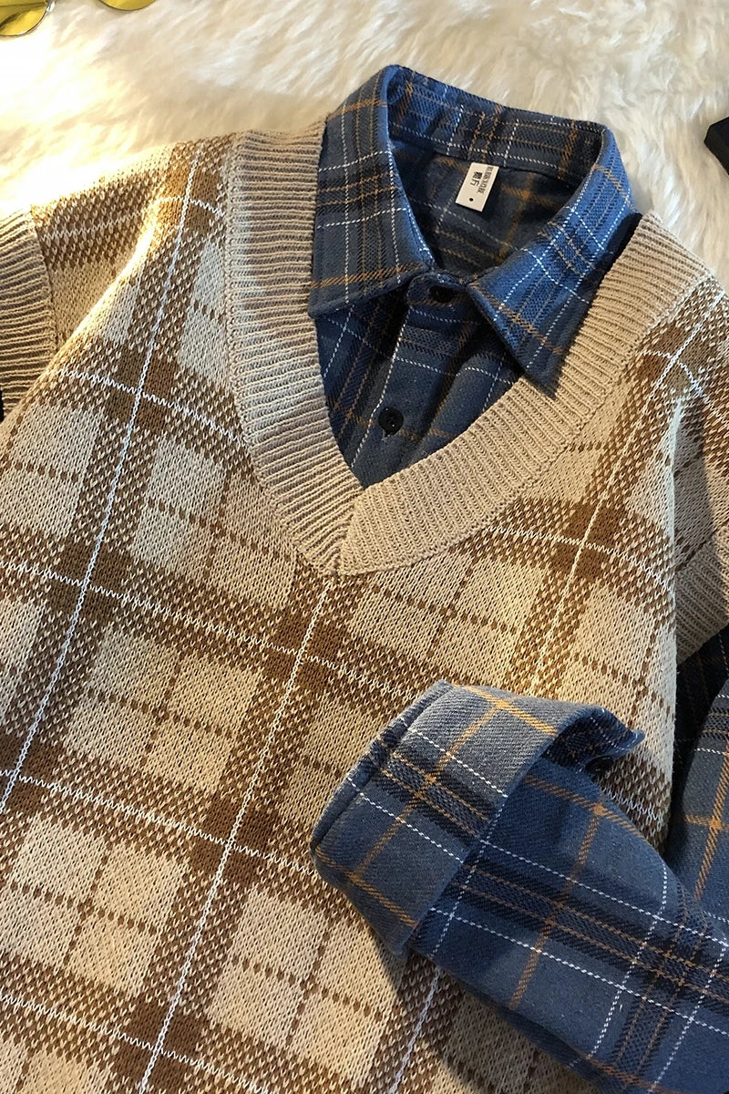 saferido Men's Knitted Sweater Vest Spring Autumn Casual Vest Korean Fashion Plaid Sleeveless Tops Knit Bottoming Shirt Male Clothes