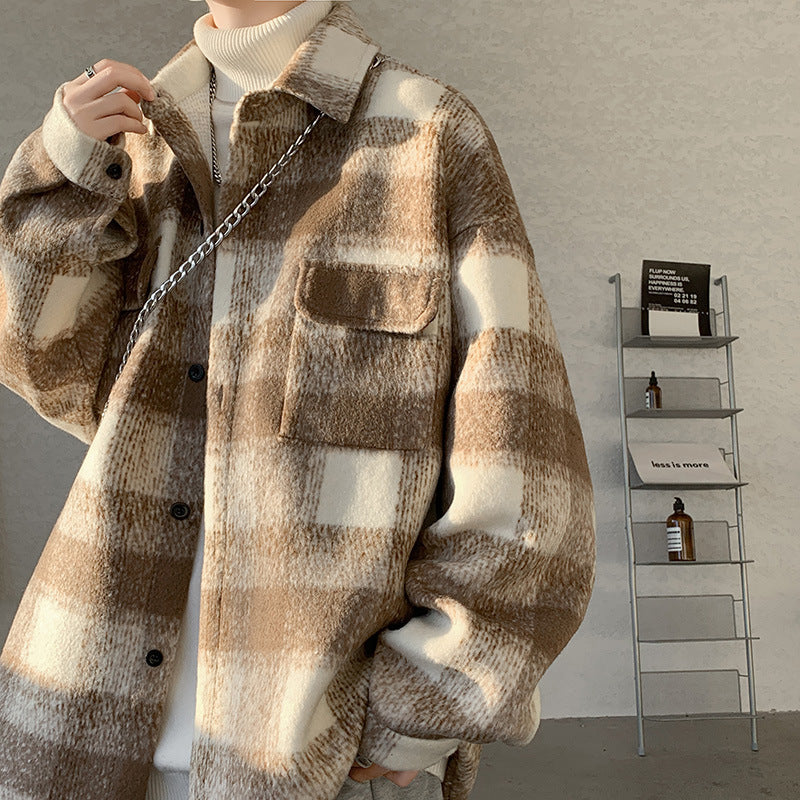 mens outfits 2024 Spring New Ct29 Loose Maillard Woolen Coat Male Student Hong Kong Style Jacket Rock Gray White