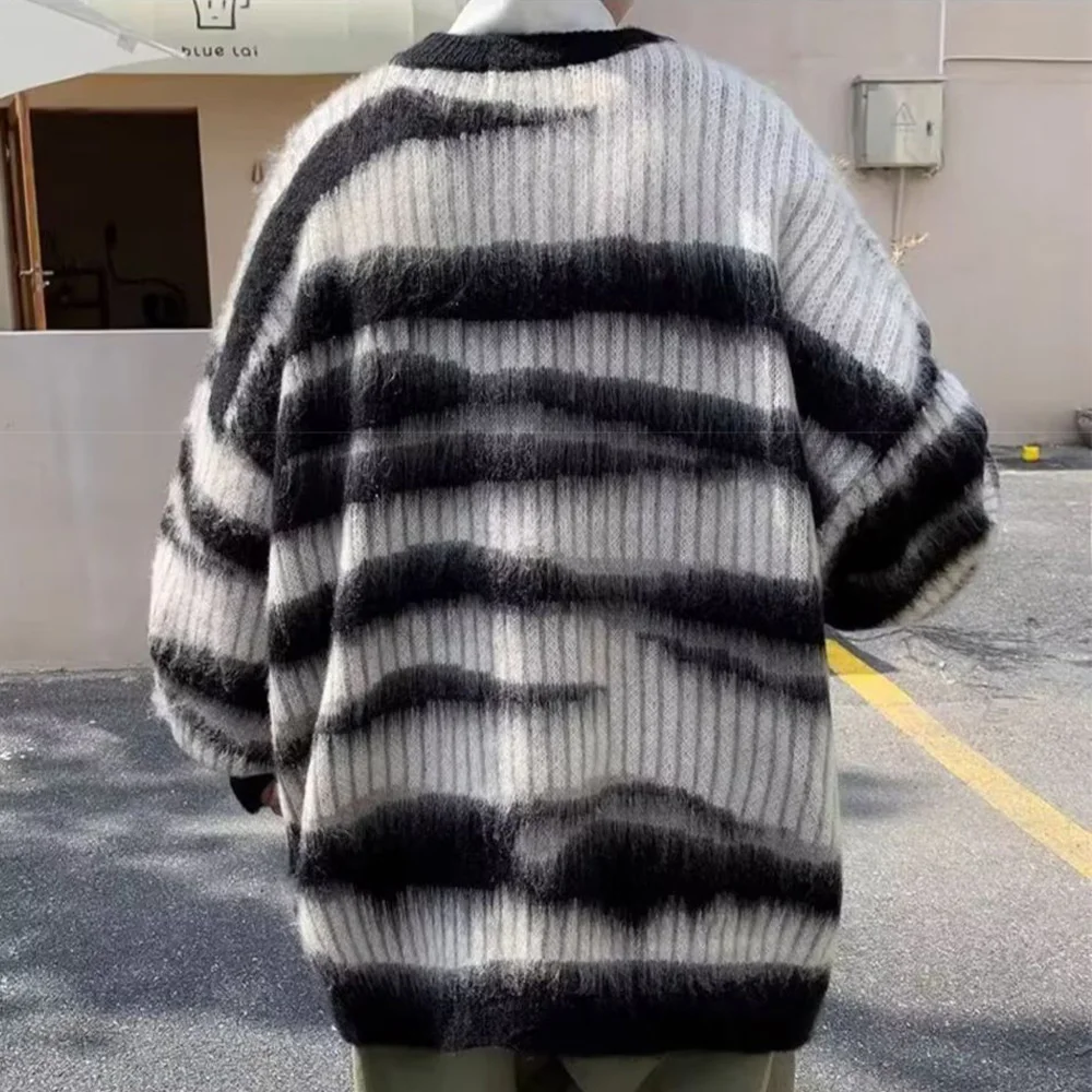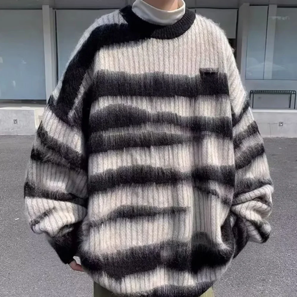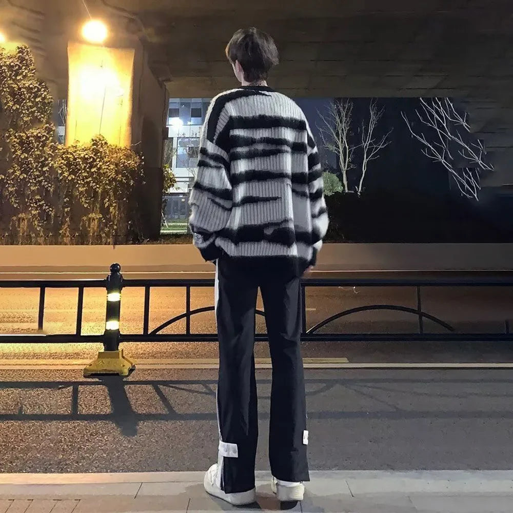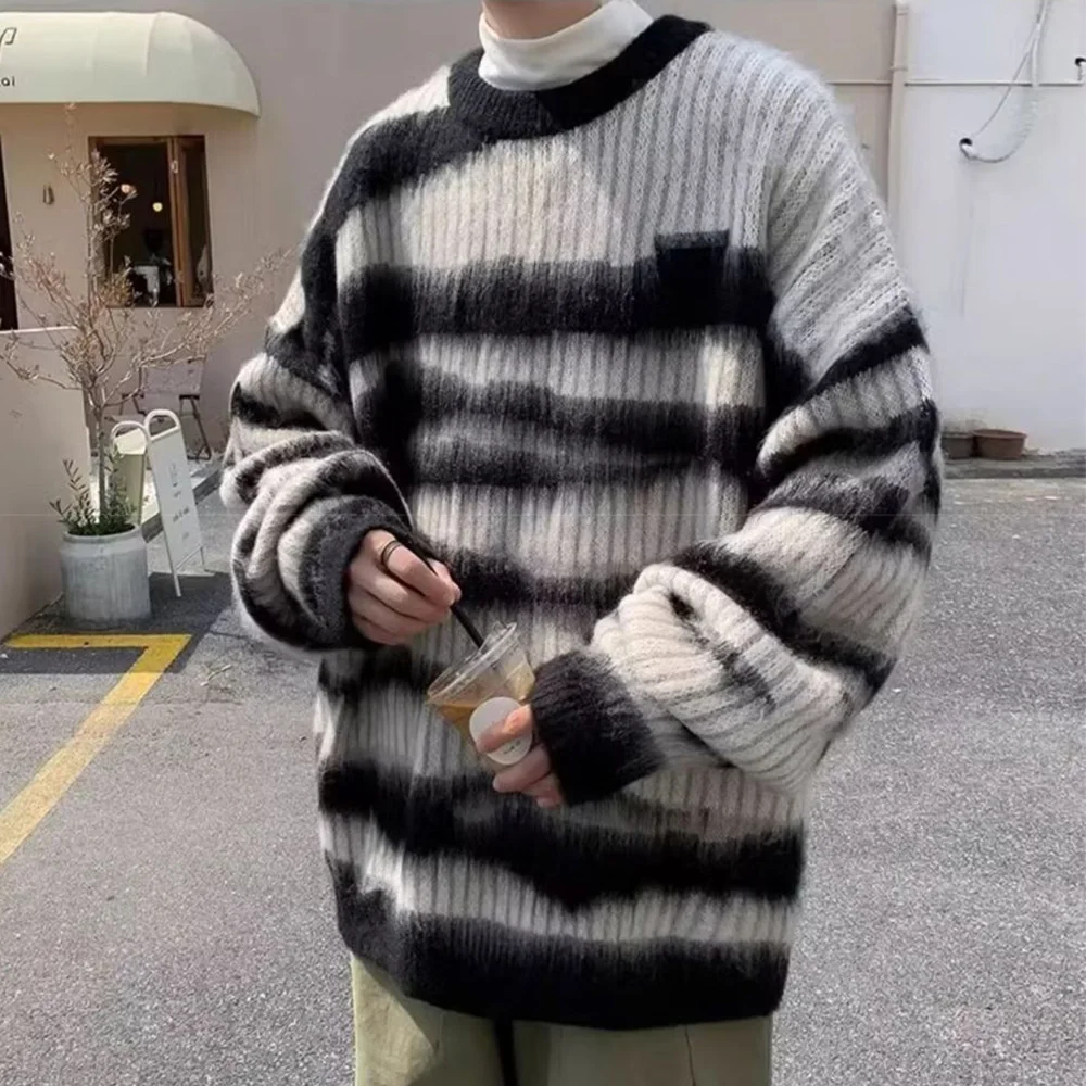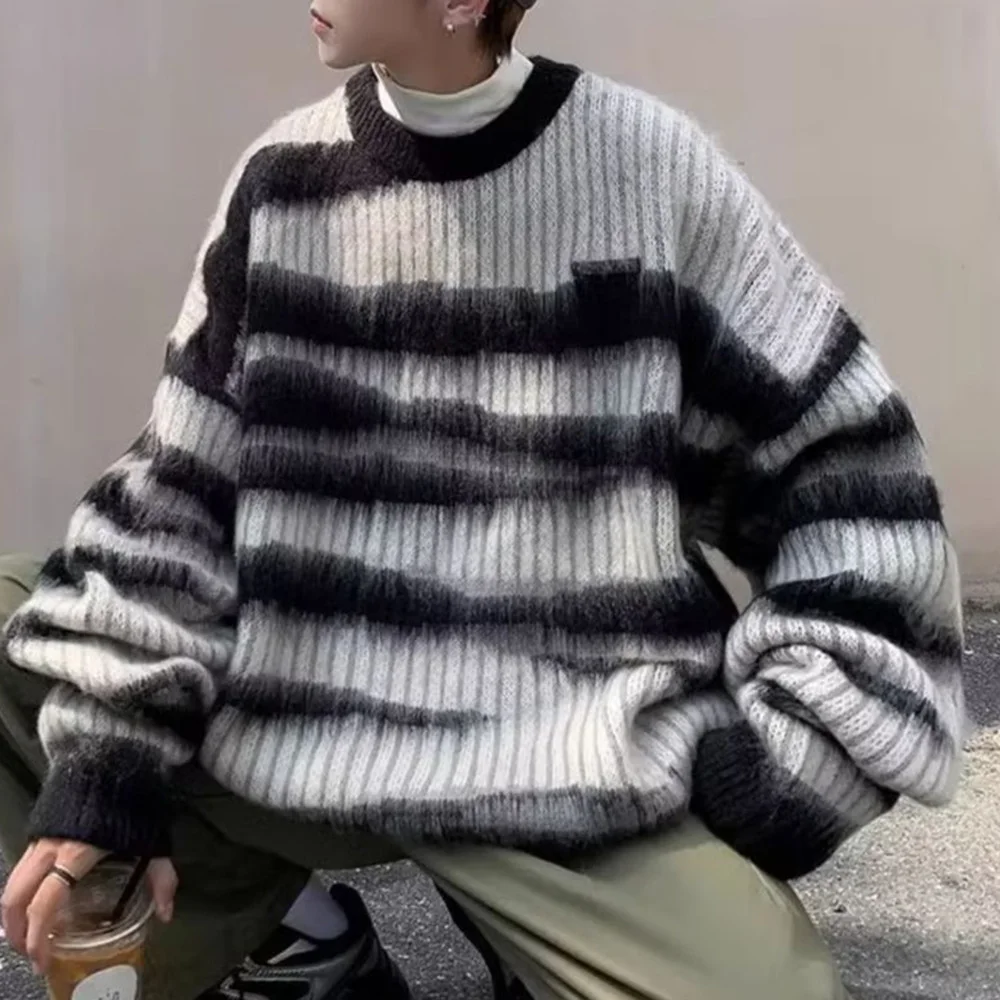 saferido Mens Thin Knitted Sweater Daily Personality Trend Casual All-Match Soft Contrast Striped Top Men'S Clothing 2024 Spring Autumn