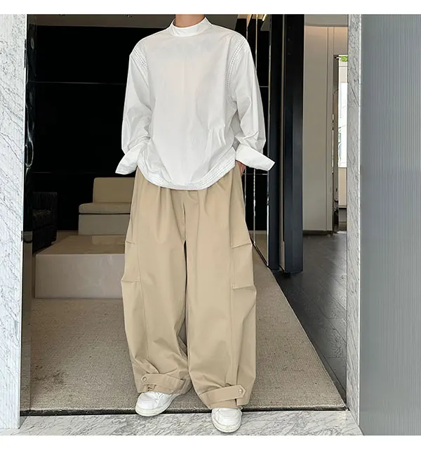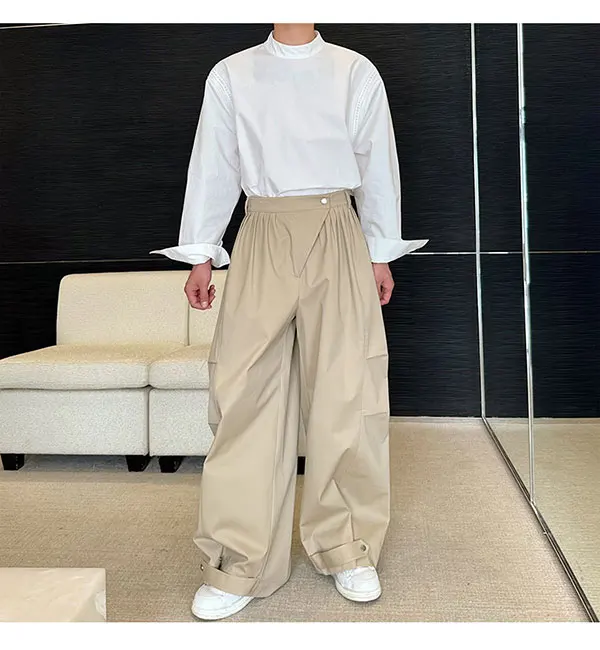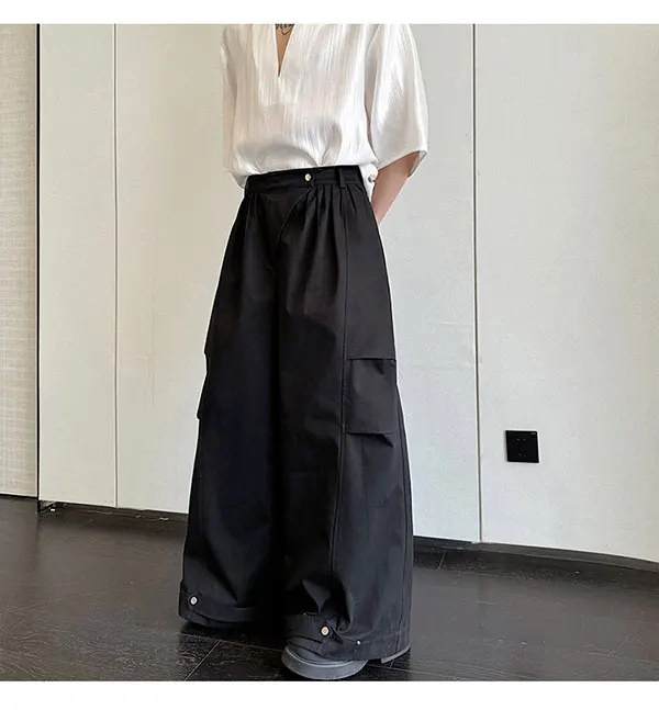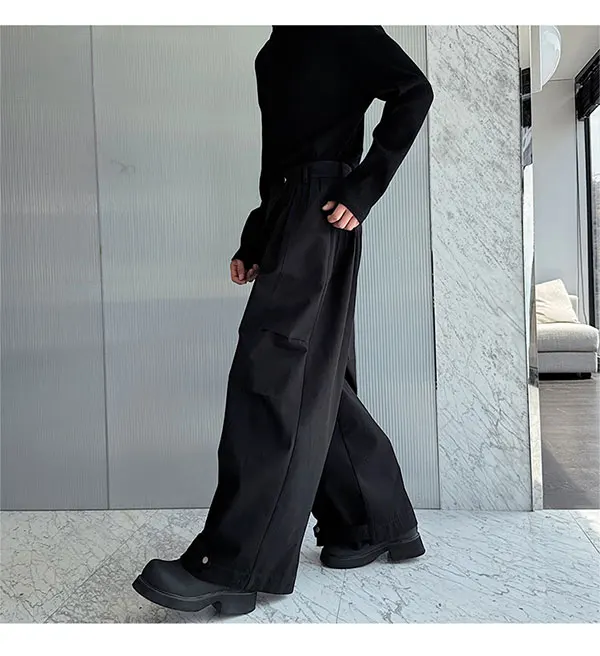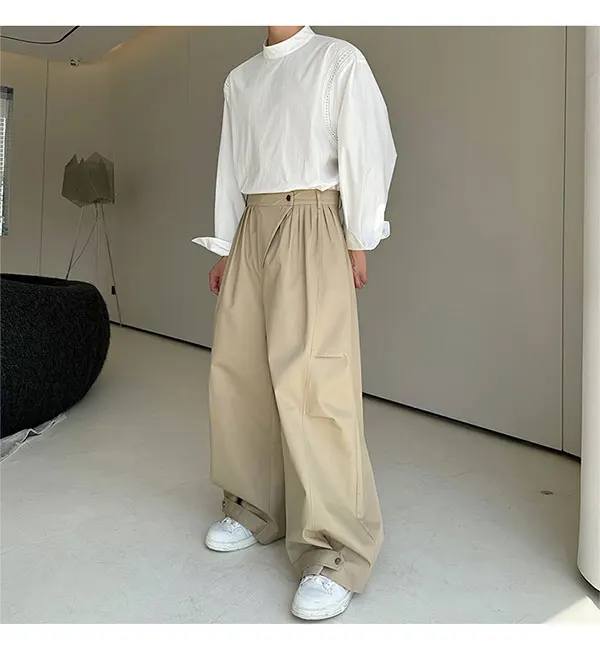 saferido Original Pleated Splicing Design Plain Straight Pants 2024 Spring New Men's Fashion Loose Street Wide Leg Trousers
