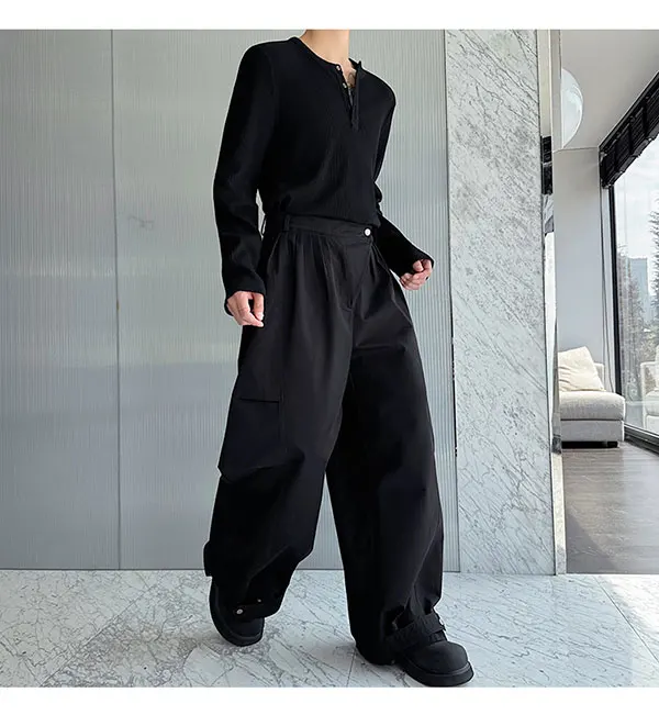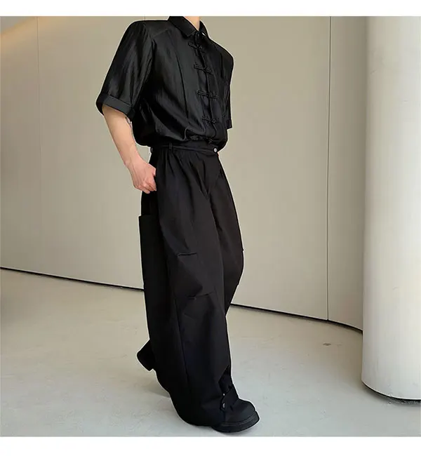 Threebooy Original Pleated Splicing Design Plain Straight Pants 2024 Spring New Men's Fashion Loose Street Wide Leg Trousers