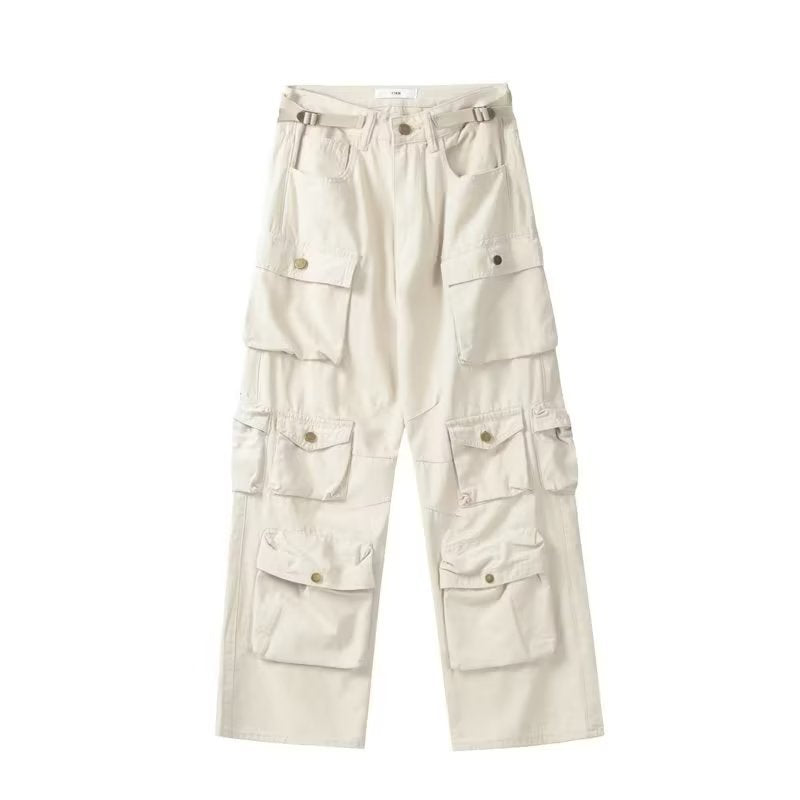 saferido outfits for men American Vibe Style Street Multi-Pocket Workwear Casual Pants Men's Ins Loose Straight High Street Retro Trousers