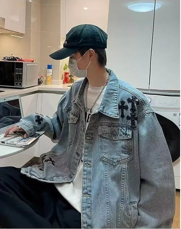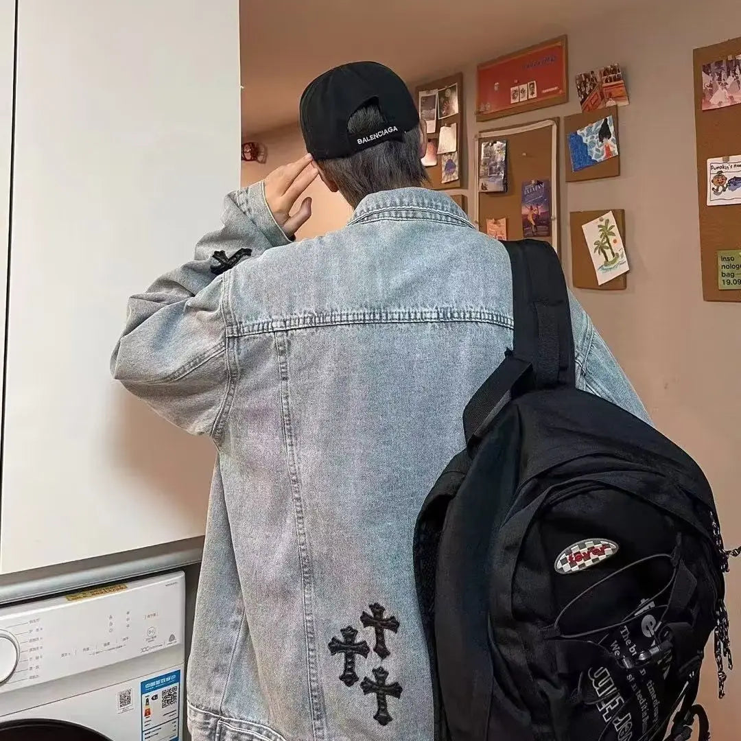 saferido Oversize Jacket Men's Spring Autumn Men's Clothing Jacket baggy Hip Hop Harajuku Street Clothing Fashion Trendy Denim Jacket