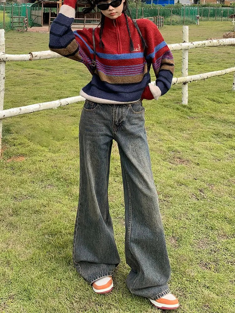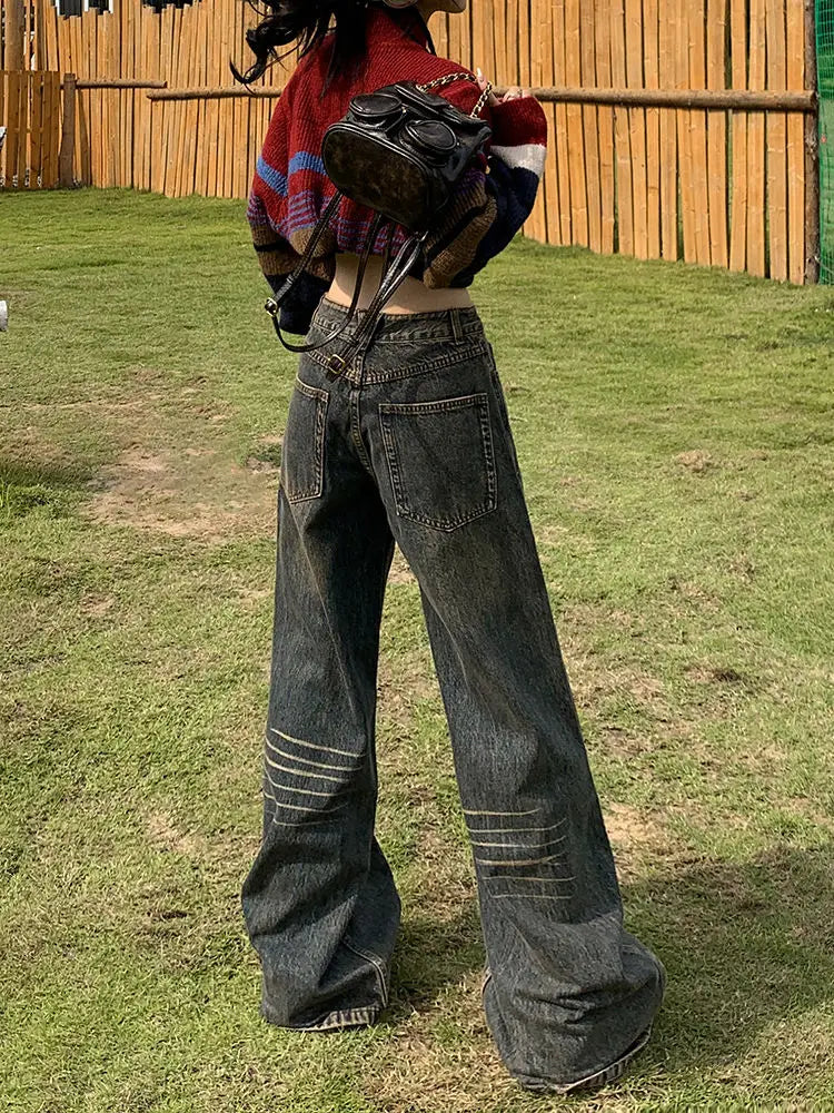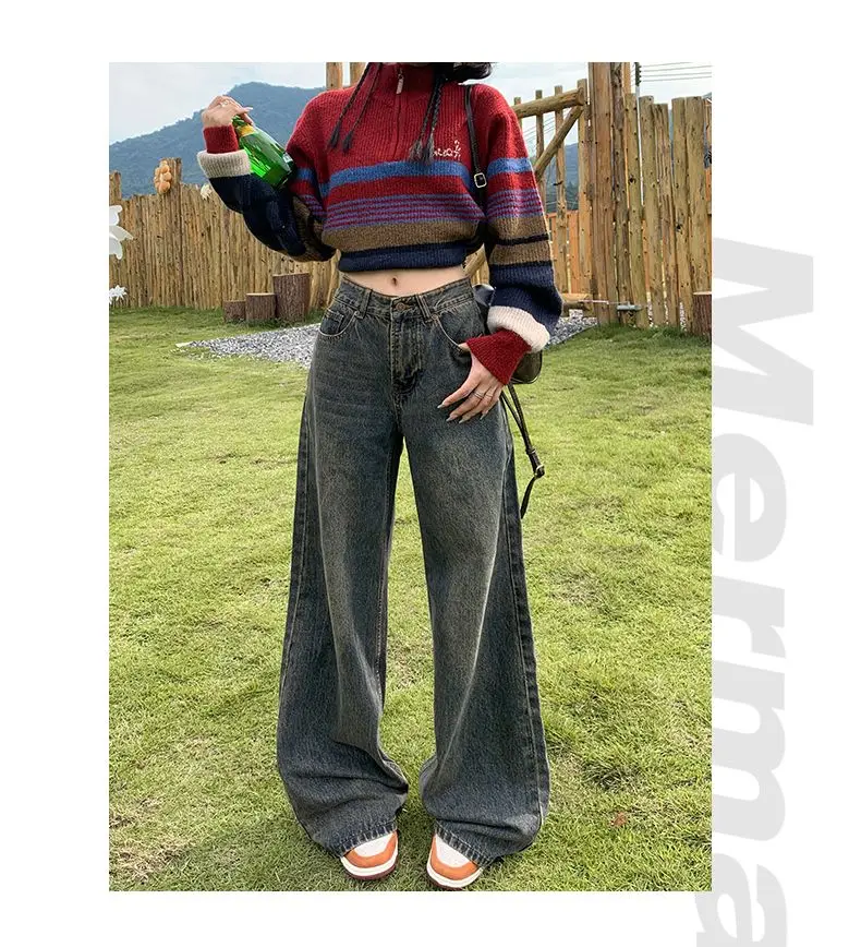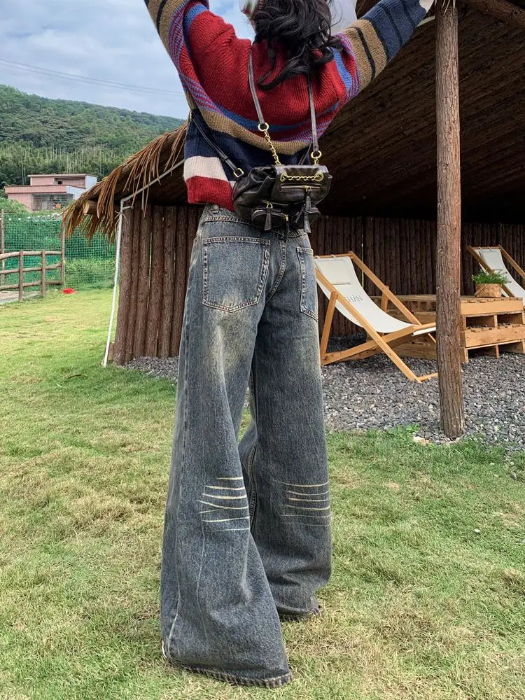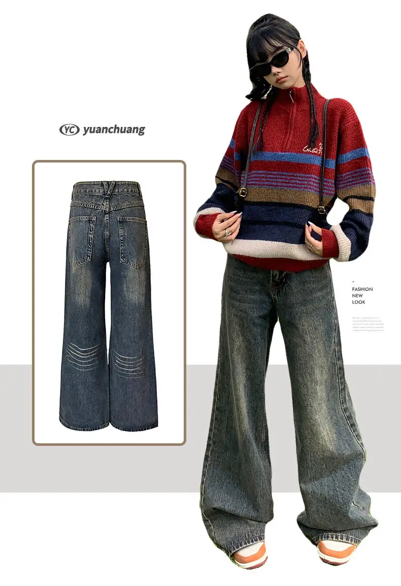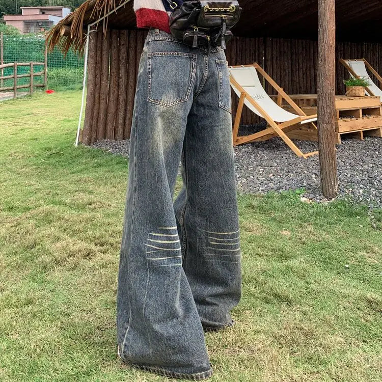 saferido Retro loose wide leg micro flared pants in spring fashionable and slimming personality men and women floor mopping casual jeans