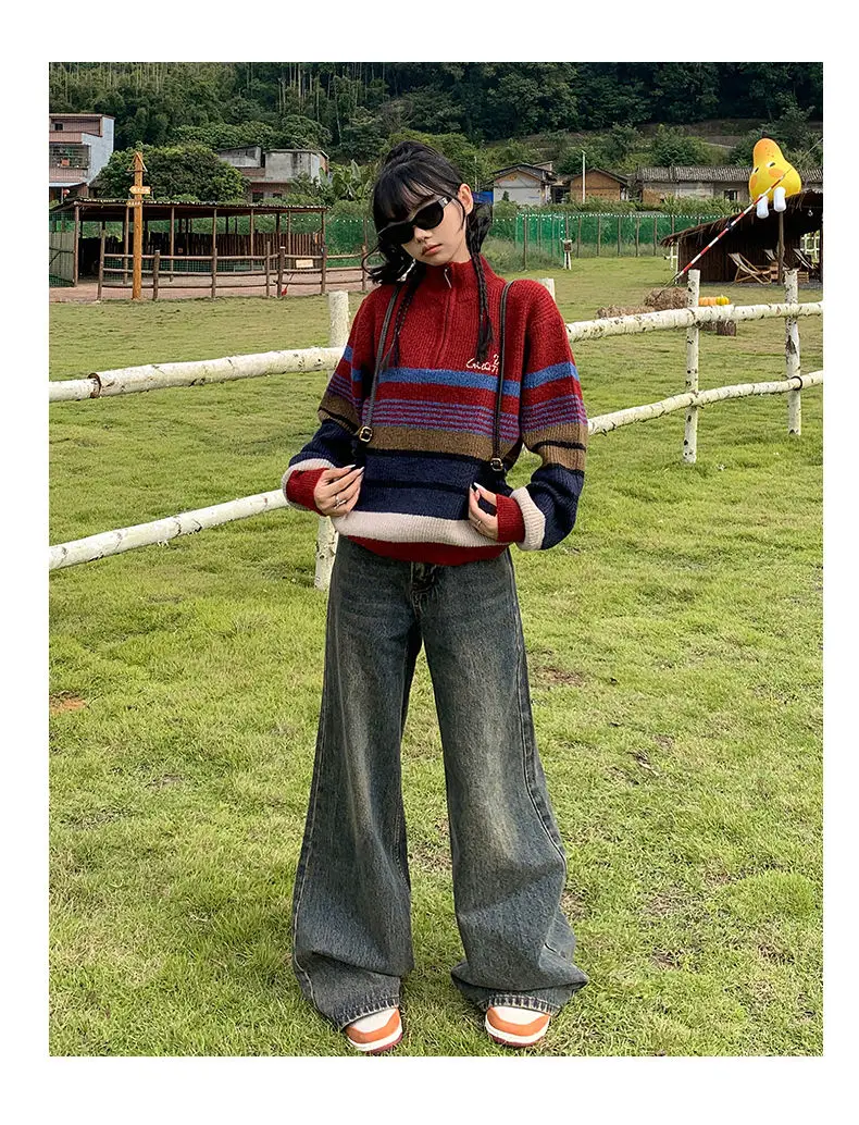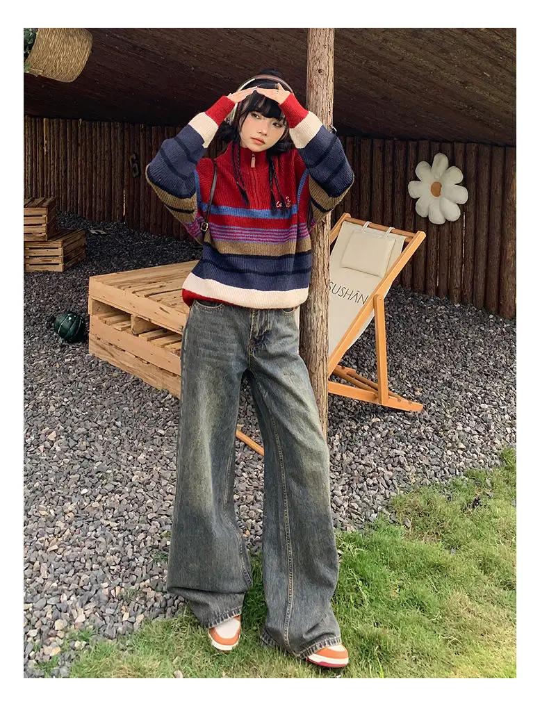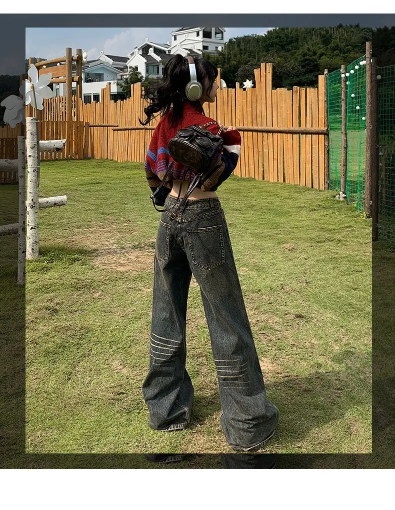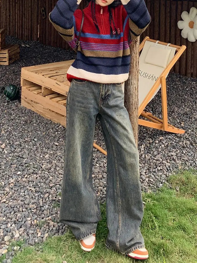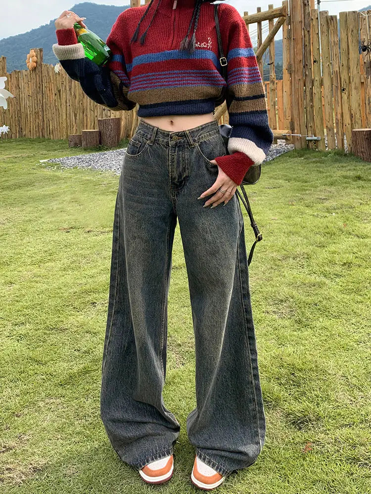 saferido Retro loose wide leg micro flared pants in spring fashionable and slimming personality men and women floor mopping casual jeans