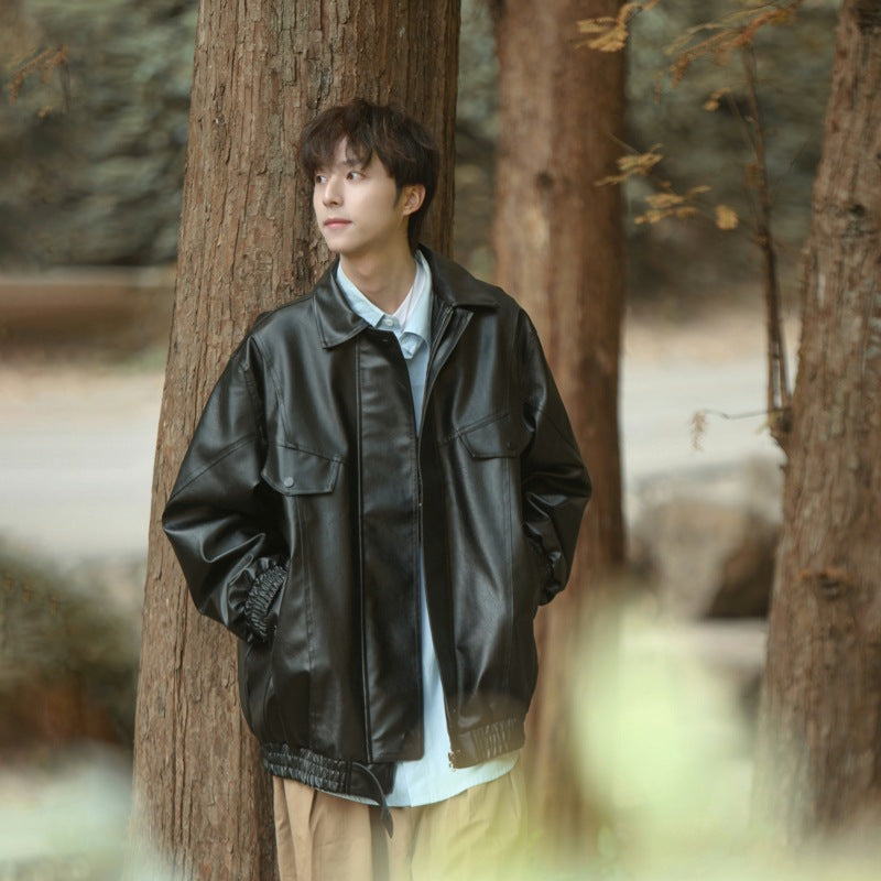 skater boy outfits American Retro Brown Leather Jacket Men's PU Leather Flight Jacket Hiphop Motorcycle Jacket