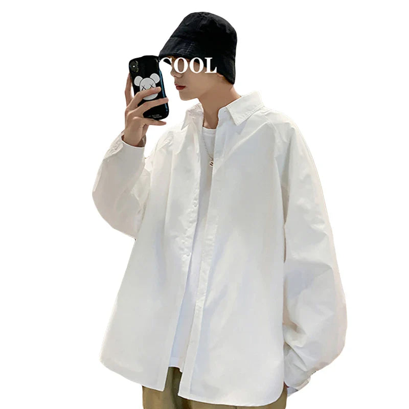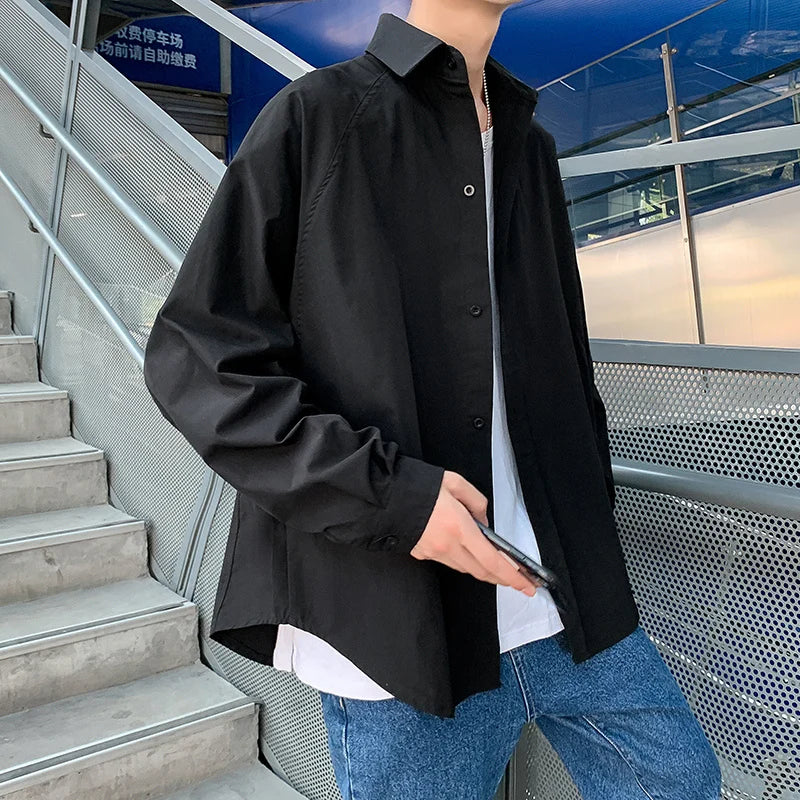 saferido soild style shirt men's long sleeve no iron solid color shirt coat spring Korean fashion casual inch shirt shirts for men