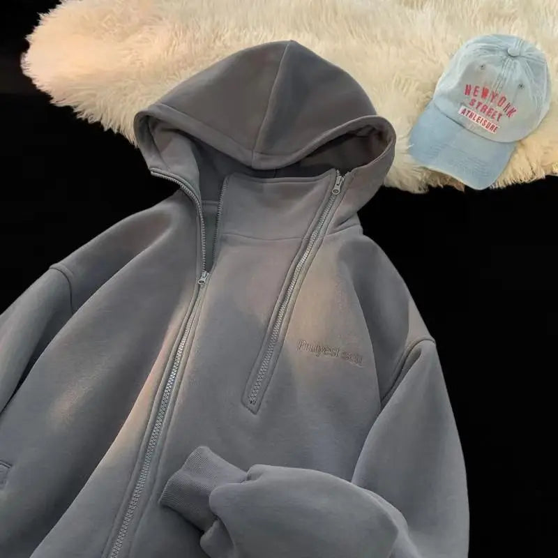 Solid Hoodies Men Spring Autumn Jackets Women‘s Sweatshirt Unisex Casual Cardigan Double Zipper Hoodies