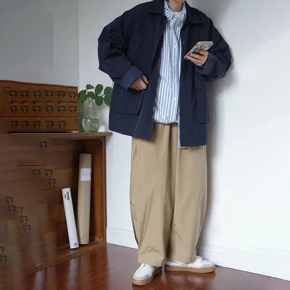 saferido Spring And Autumn Fashion Casual Loose Retro Jacket Unisex Solid Color Lapel Basic Versatile Functional Jacket Coat For Men