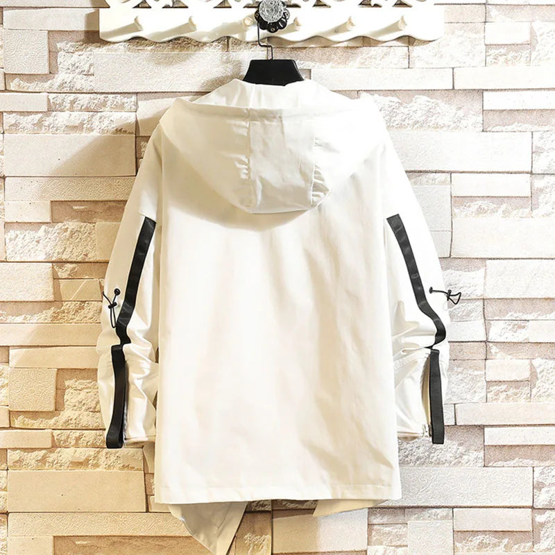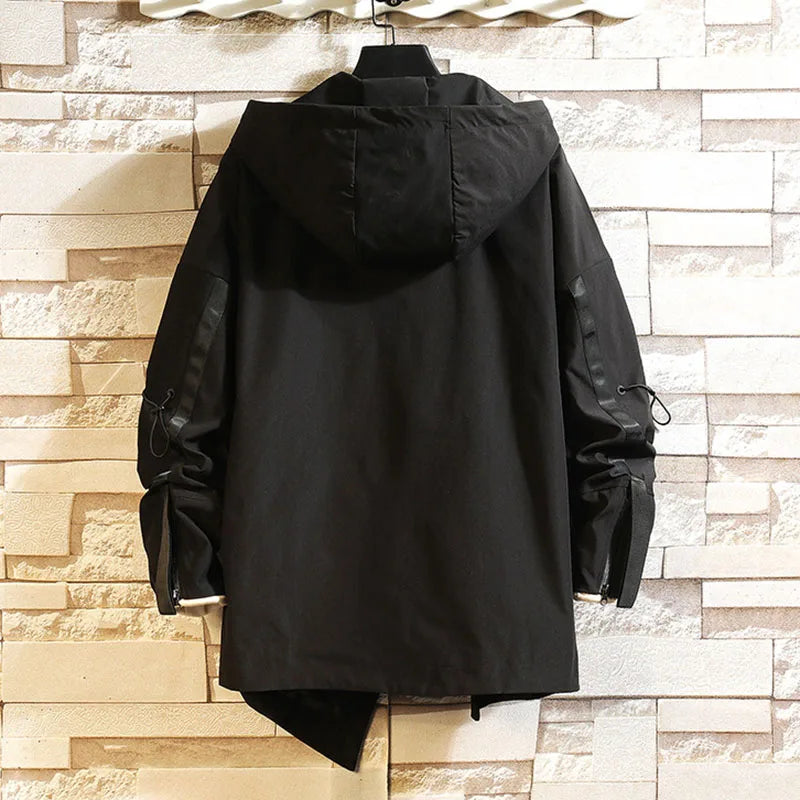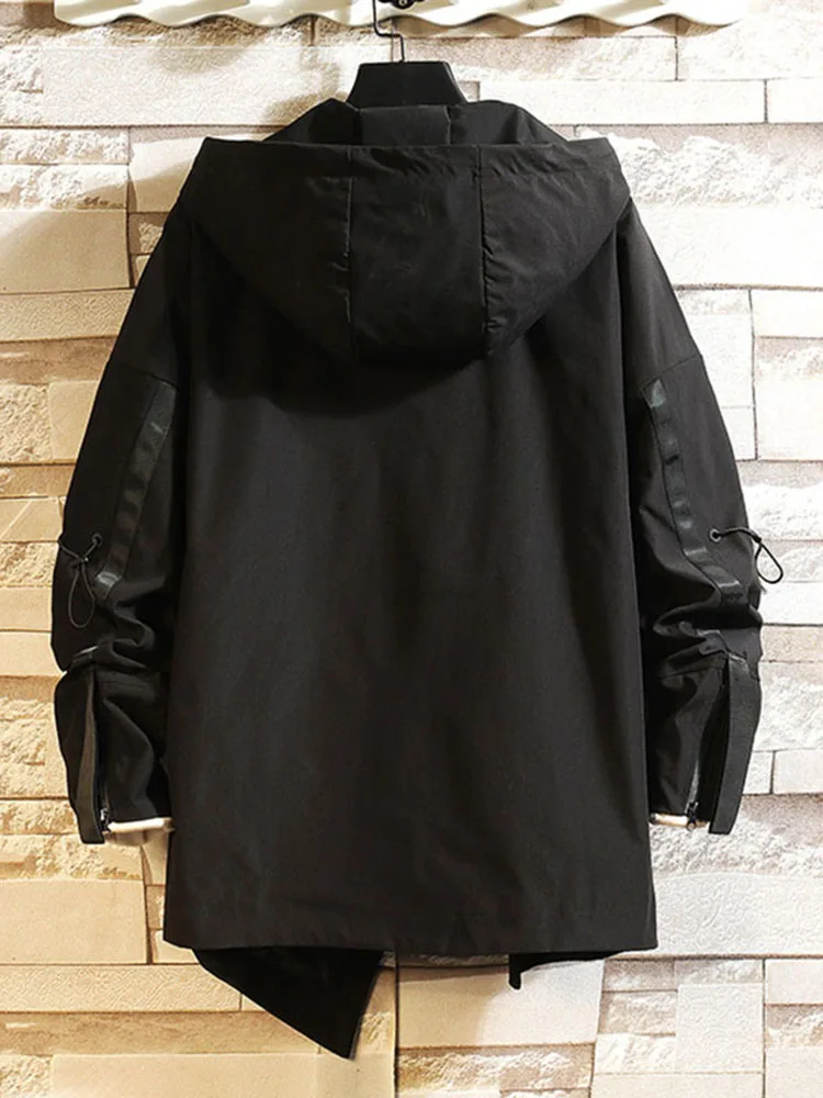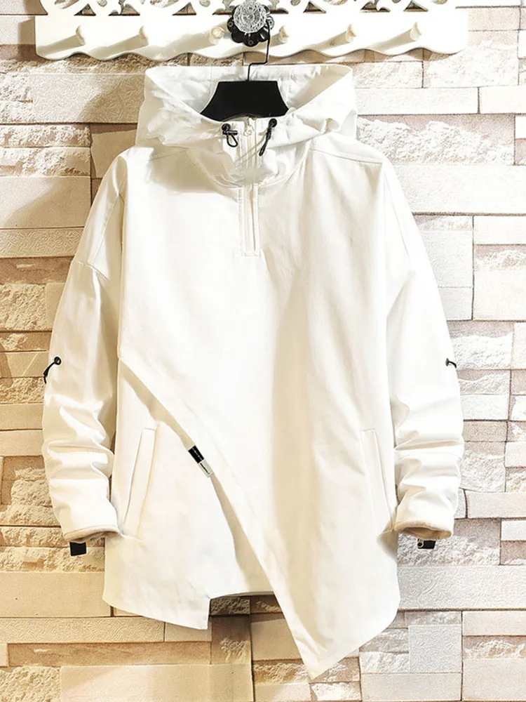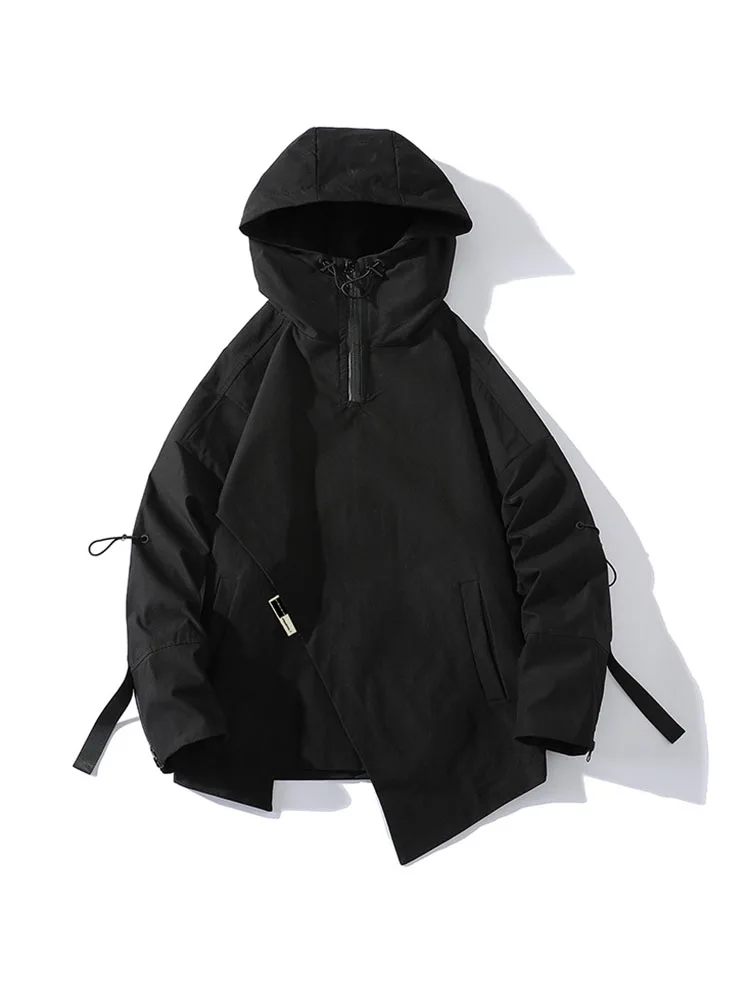 saferido Spring and Autumn Men and Women Irregular Hem Pullover Thin Jackets High Collar Hooded Coat Loose Casual Black Windbreaker