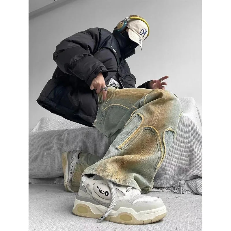 saferido Spring Autumn American High Street Retro Loose Wash To Do Old Jeans Men Women Vertical Slimming Pants Trend Jeans